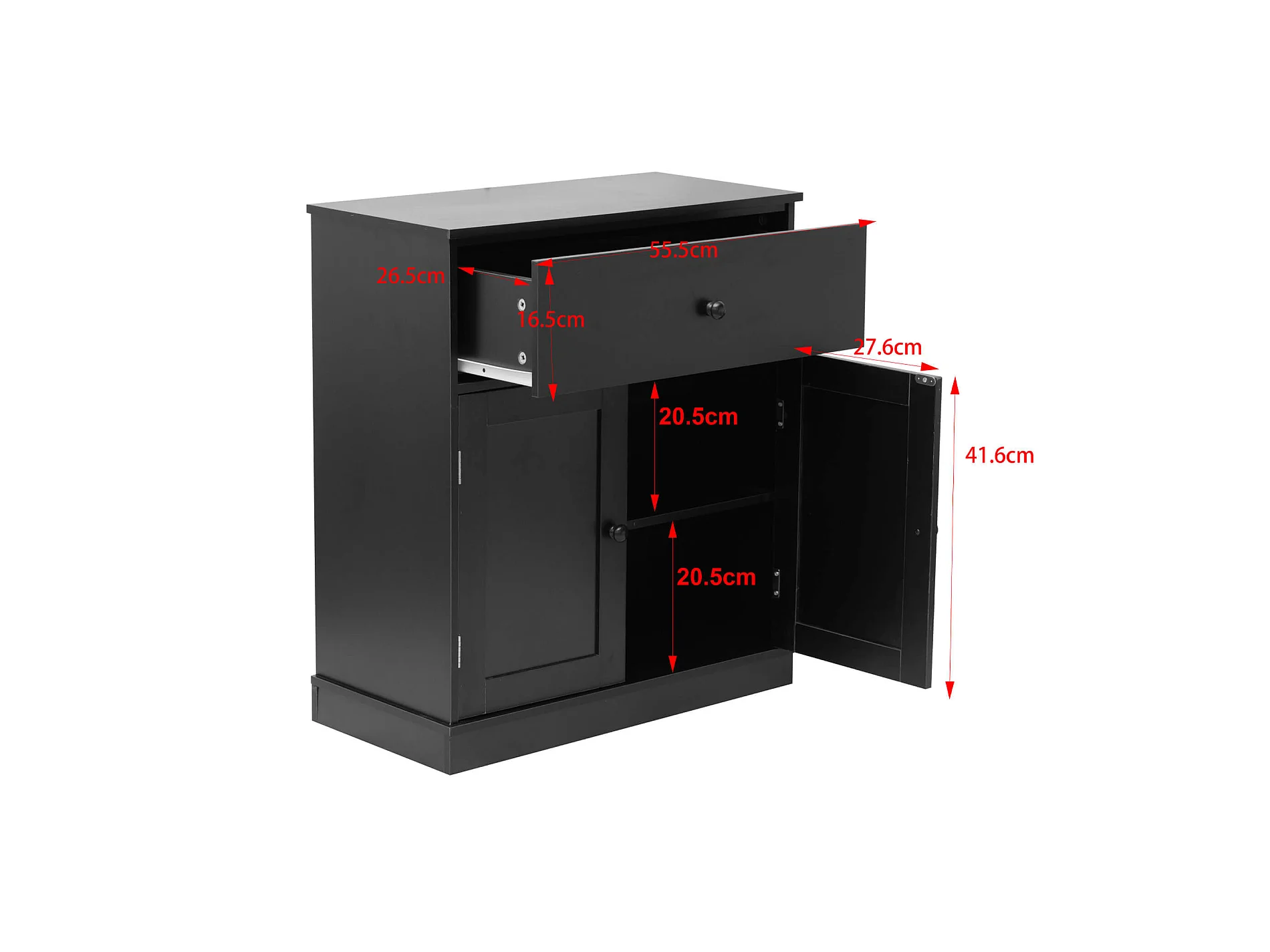 Meuble Bas Gain de Place avec Tiroir 2 Portes Noir Polyvalent