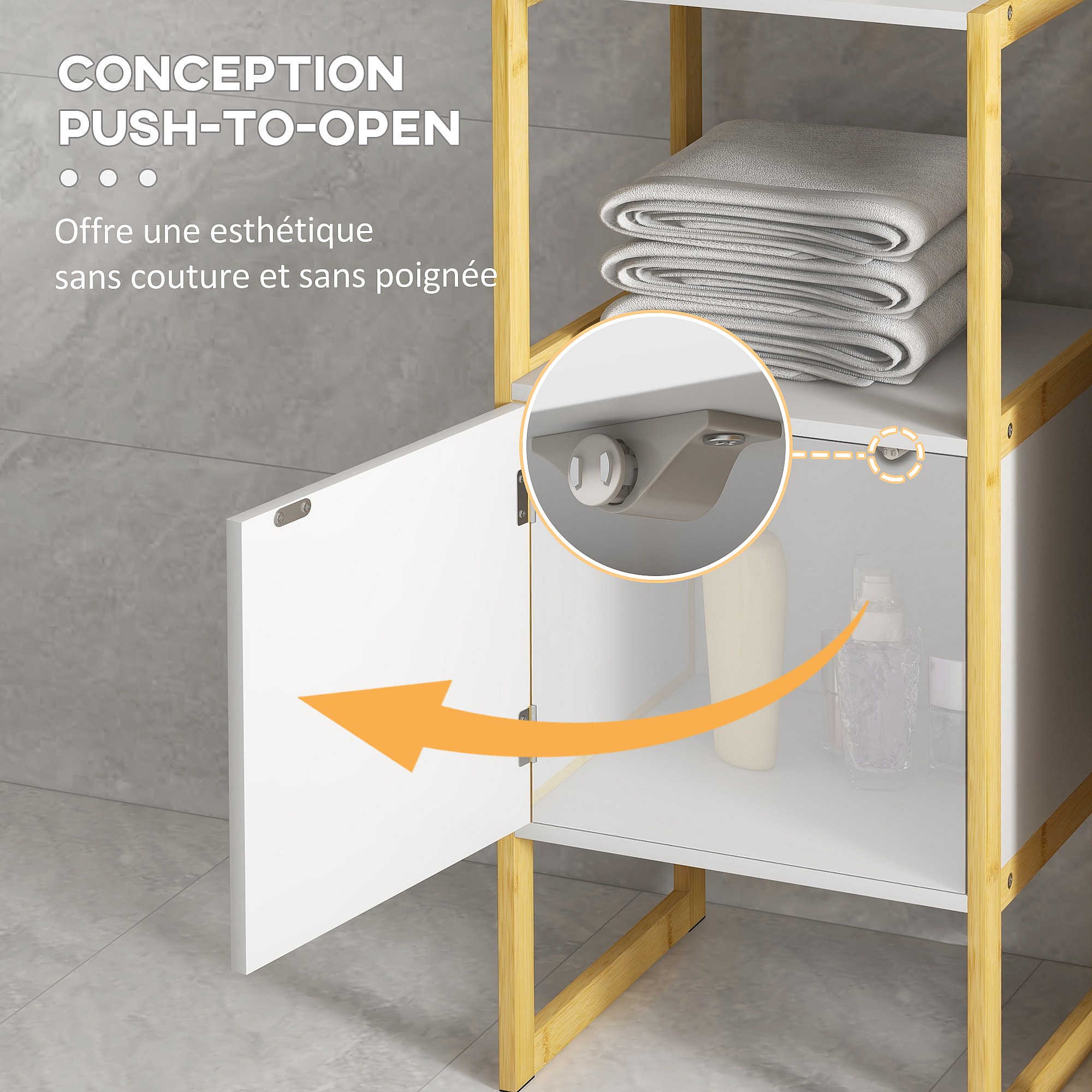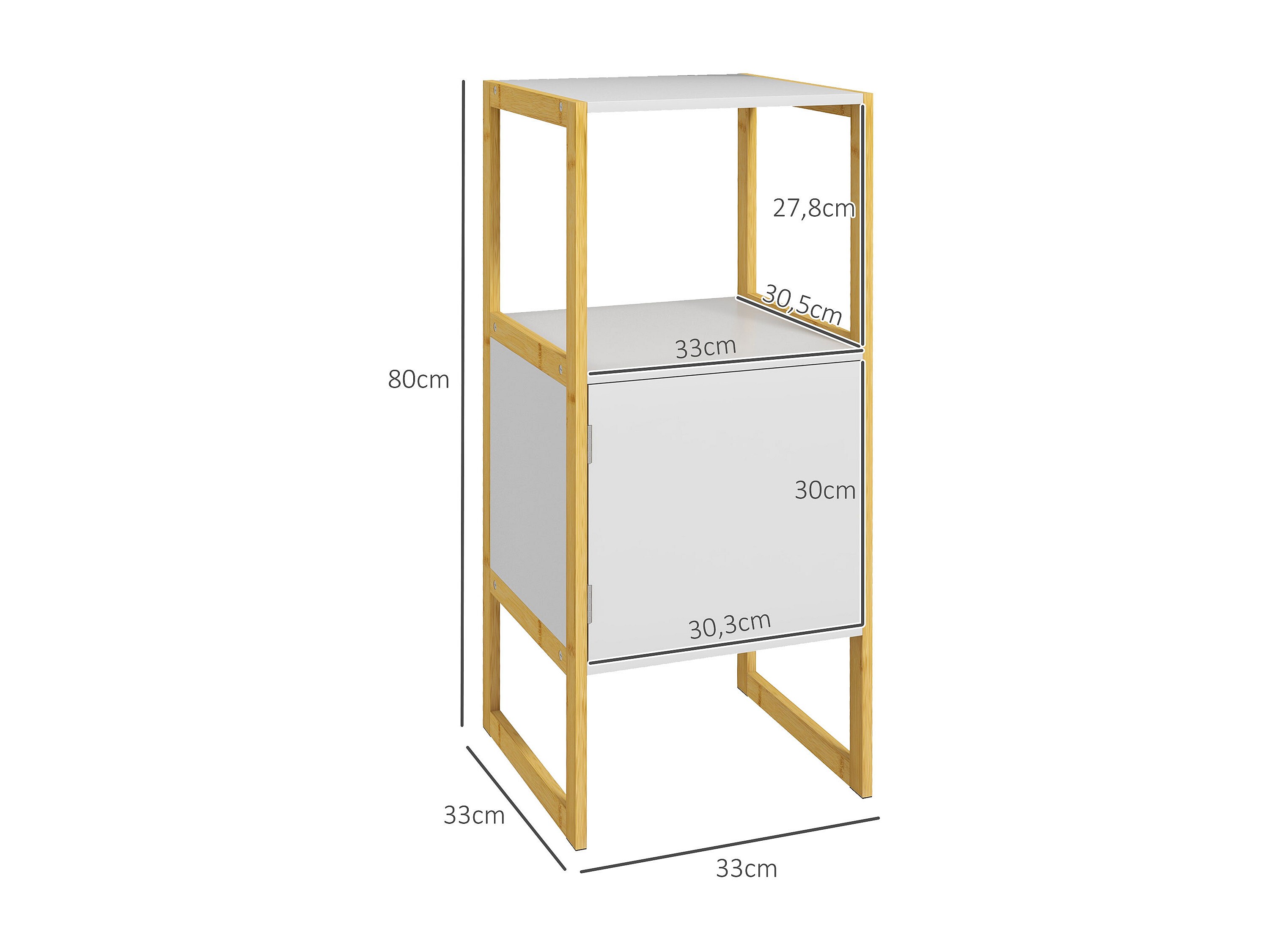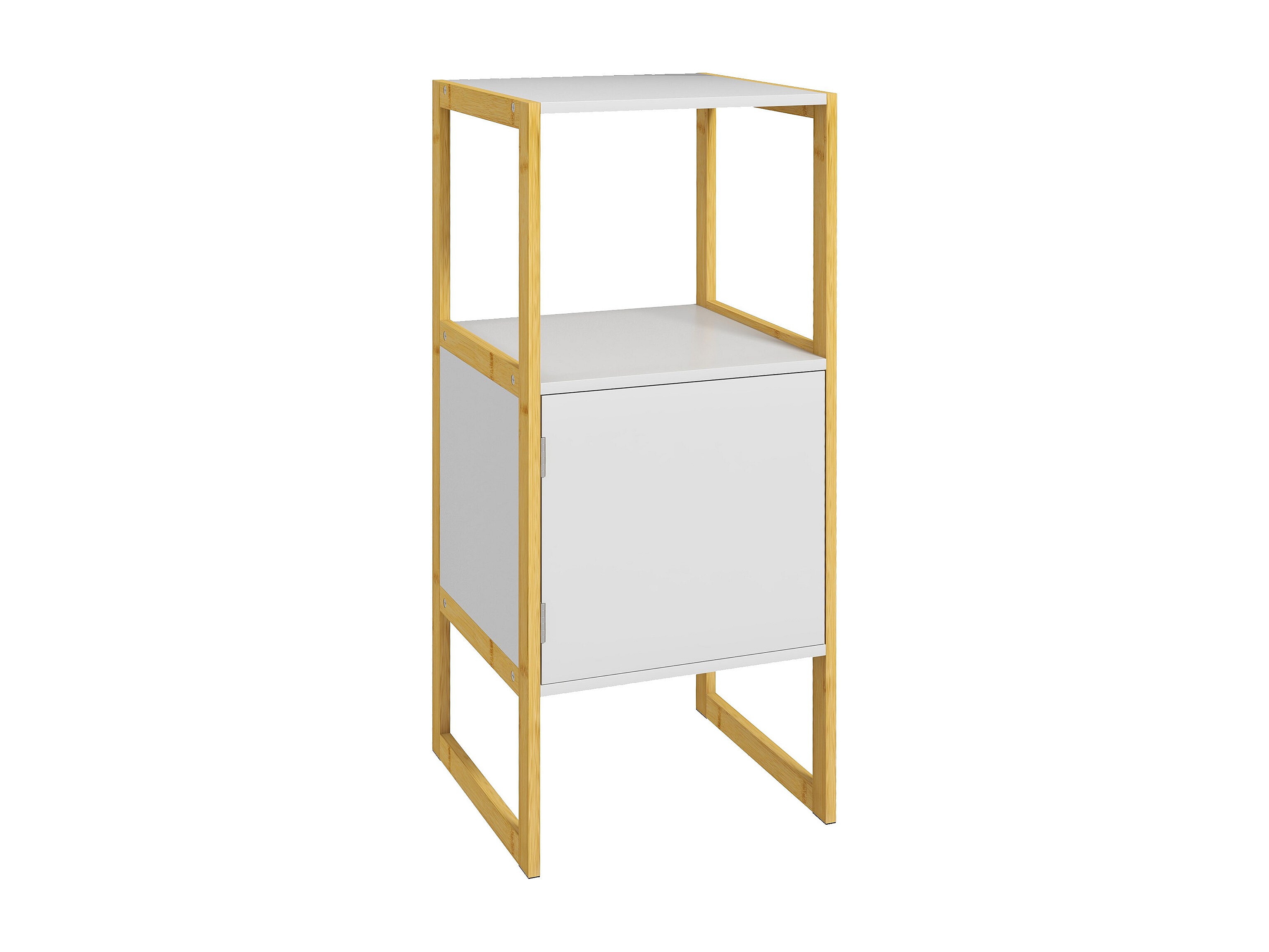 Meuble bas salle de bain - porte, étagère, plateau - châssis piètement bambou MDF blanc