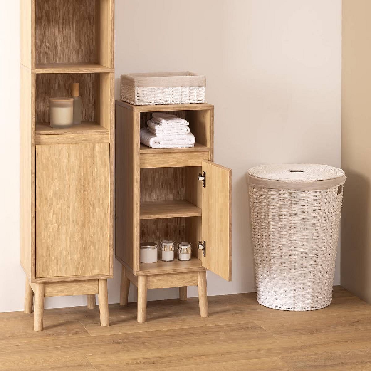 Meuble bas SDB, 1 porte coloris effet bois clair - Longueur 30 x largeur 30 x Hauteur 80 cm