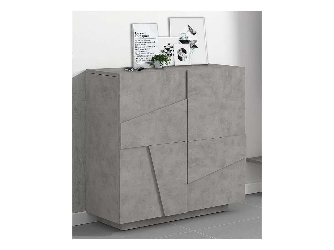 Meuble chaussure d'entrée 2 portes design moderne béton 16 paires de chaussures Ping C16