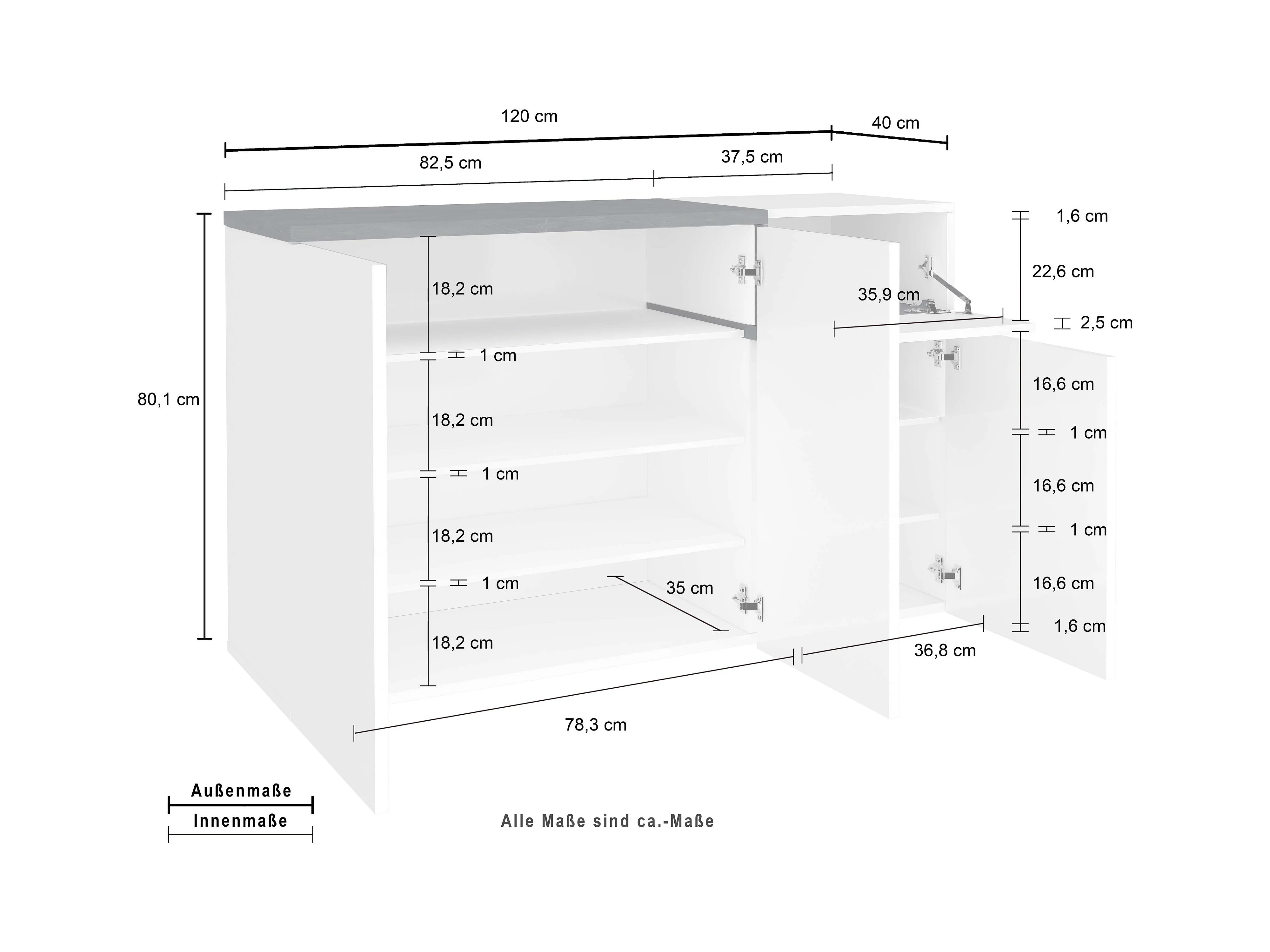 Meuble chaussures 3 Portes 22 Paires Moderne Entrée Zet Bata Ardesia L