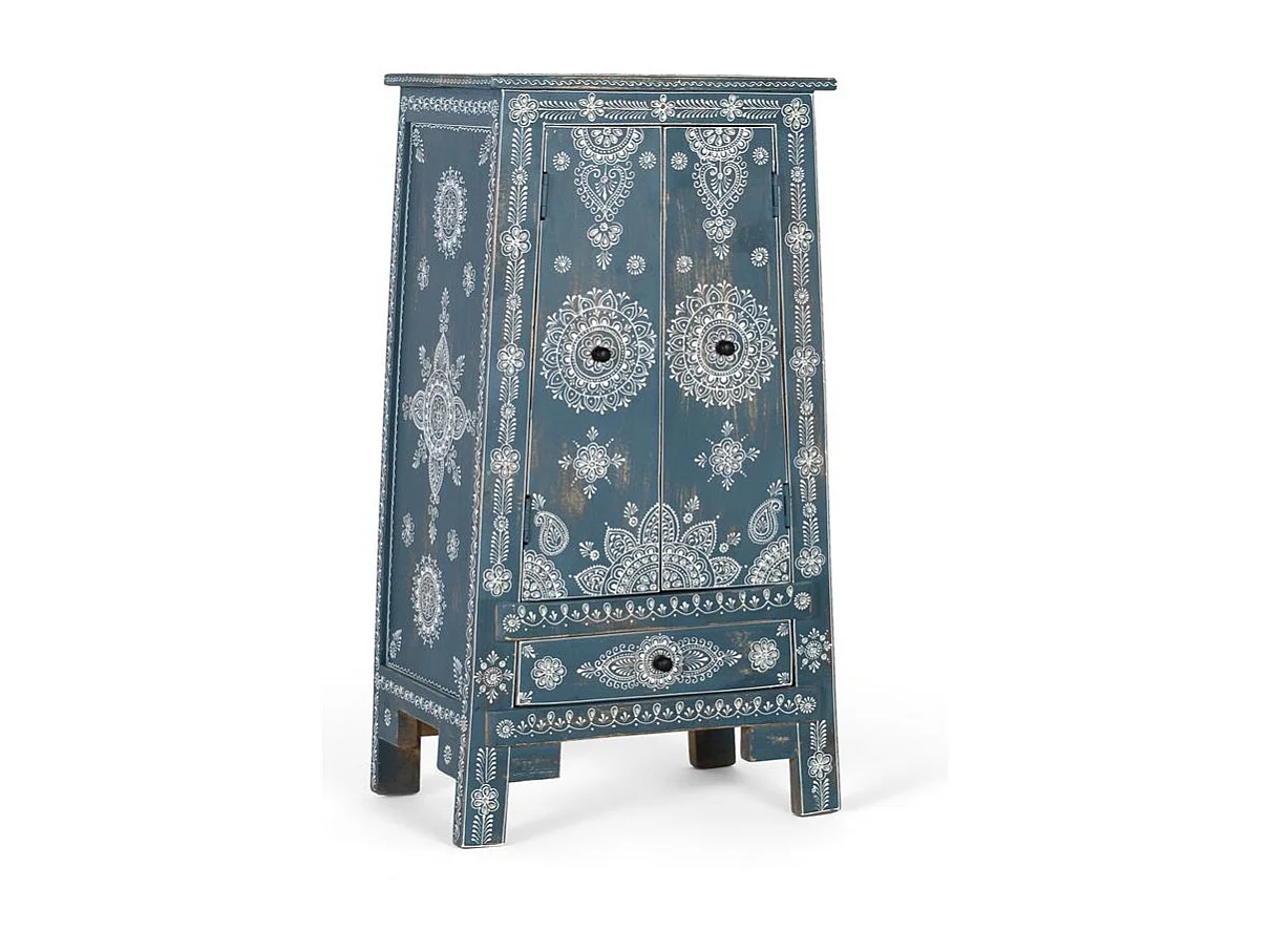 Meuble d'appoint en bois de manguier et MDF peint à la main