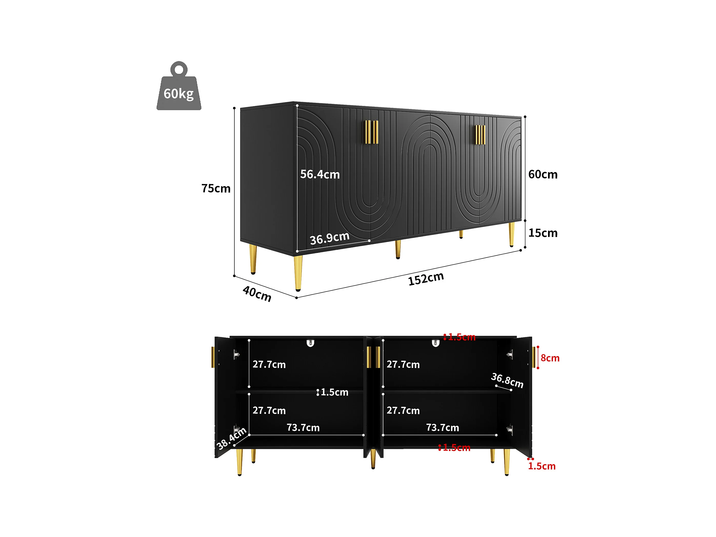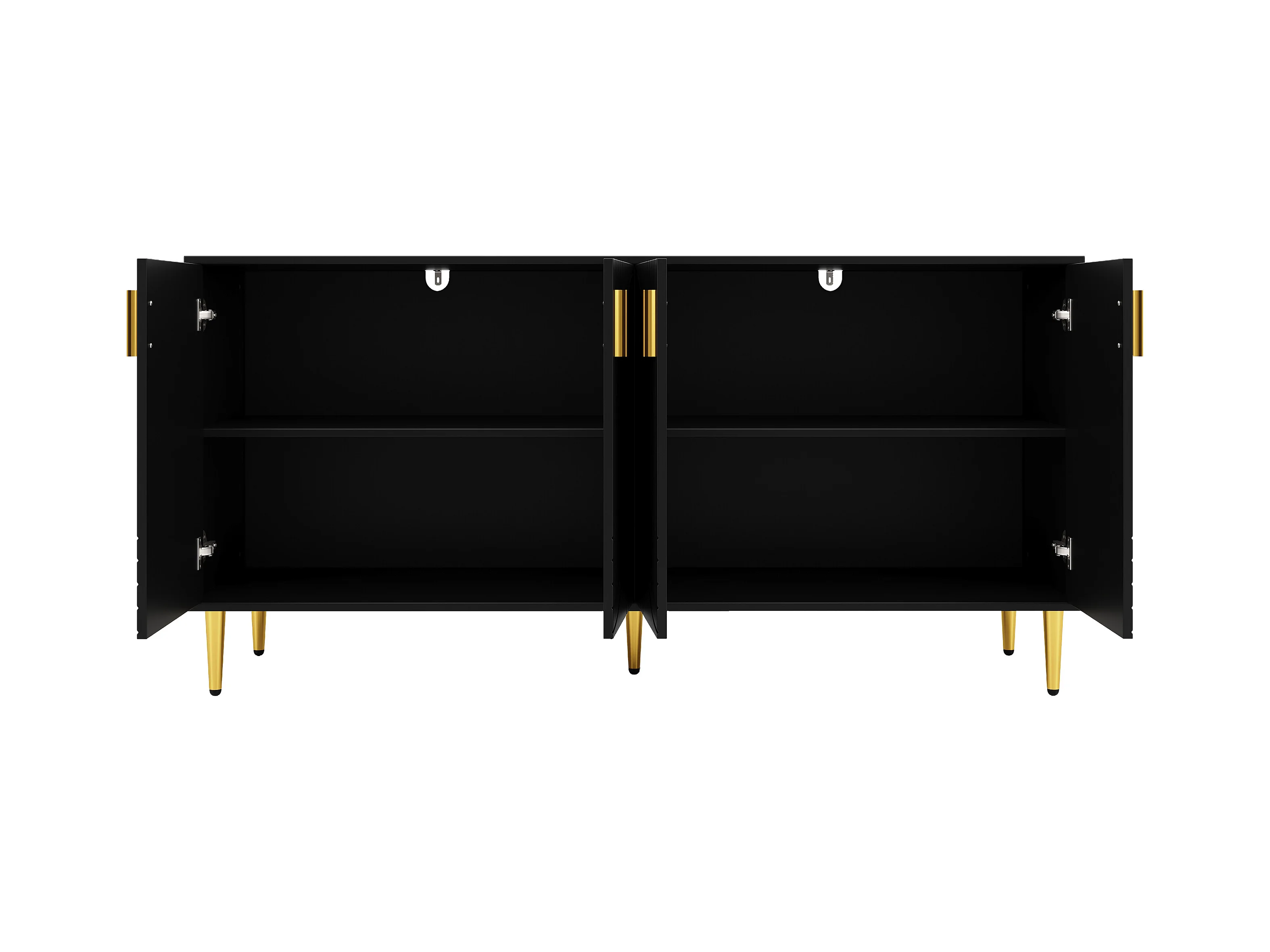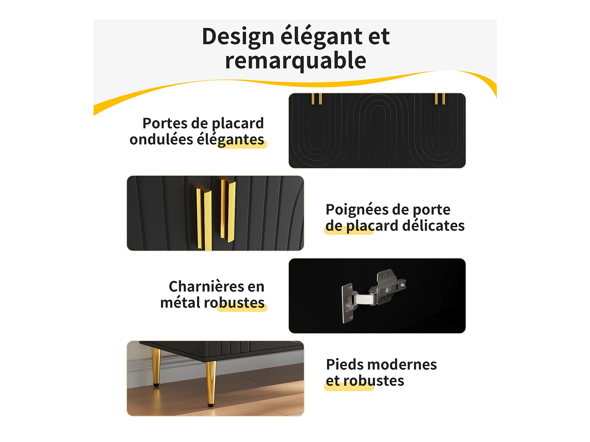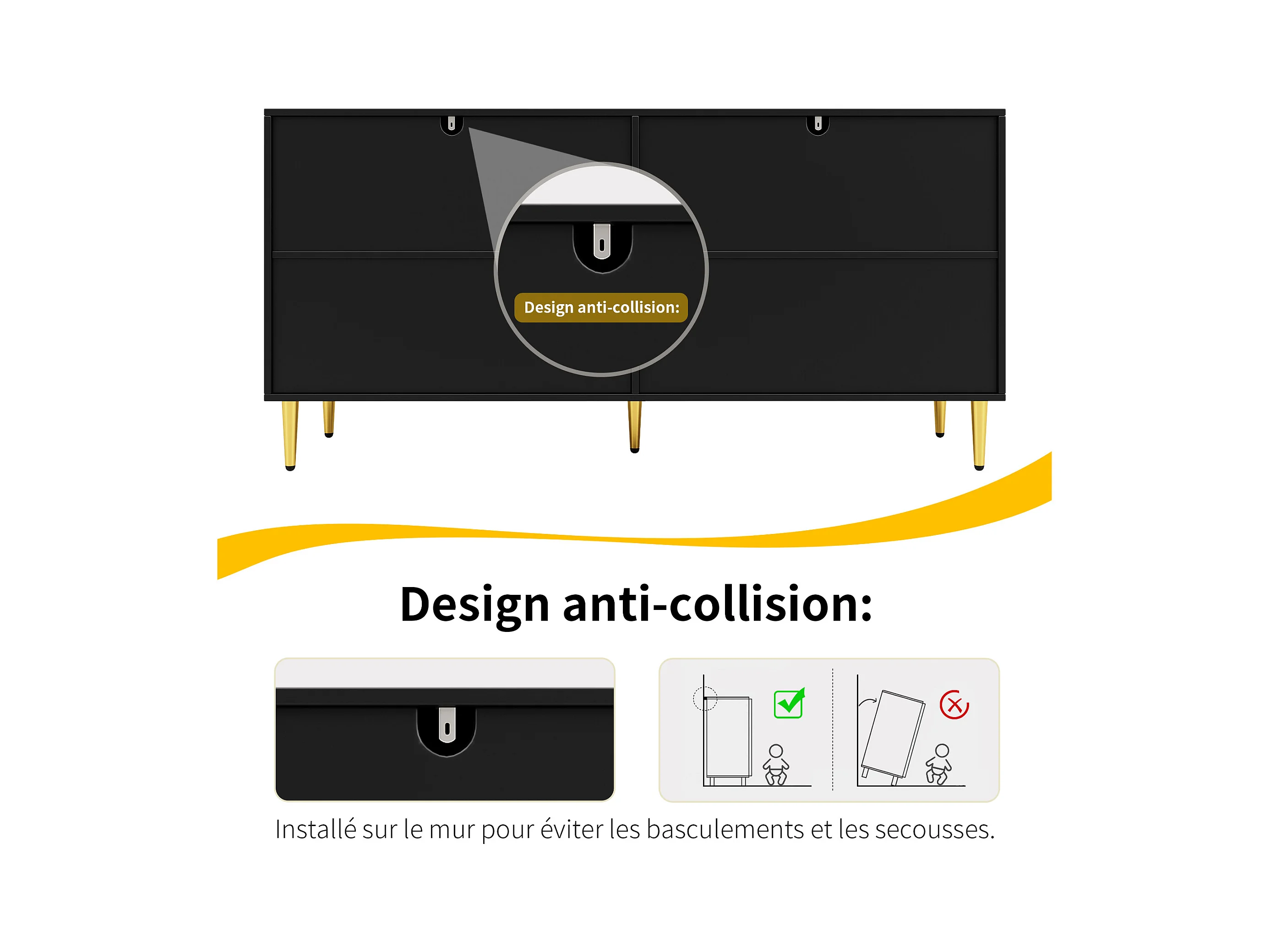 Meuble de bar pivotant 360° et escamotable - avec 4 tiroirs et 1 porte - étagères ouvertes - NOir