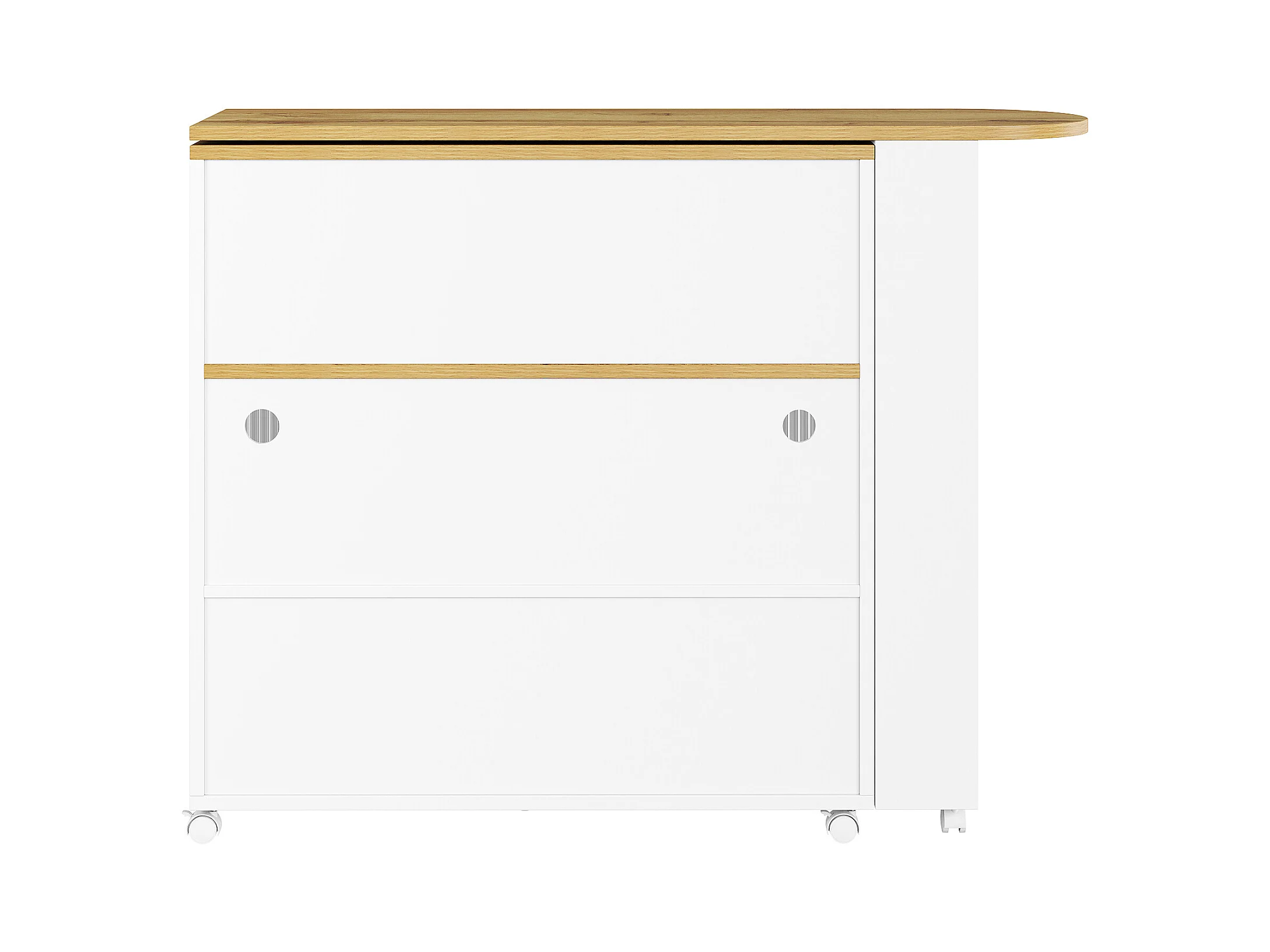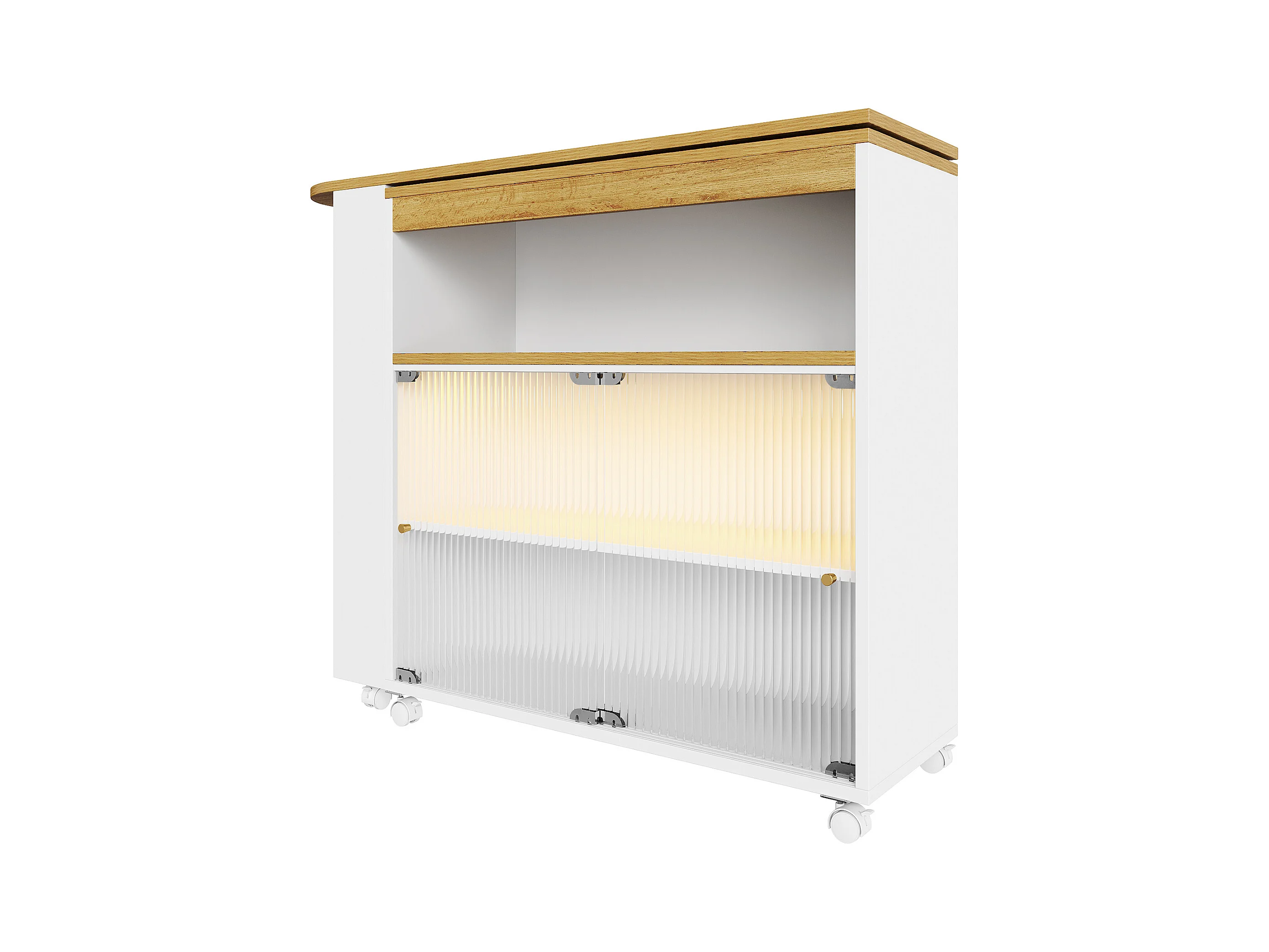 Meuble de bar rotatif - Table de bar extensible avec éclairage LED et porte coulissante en verre - 4 rangements ouverts - blanc