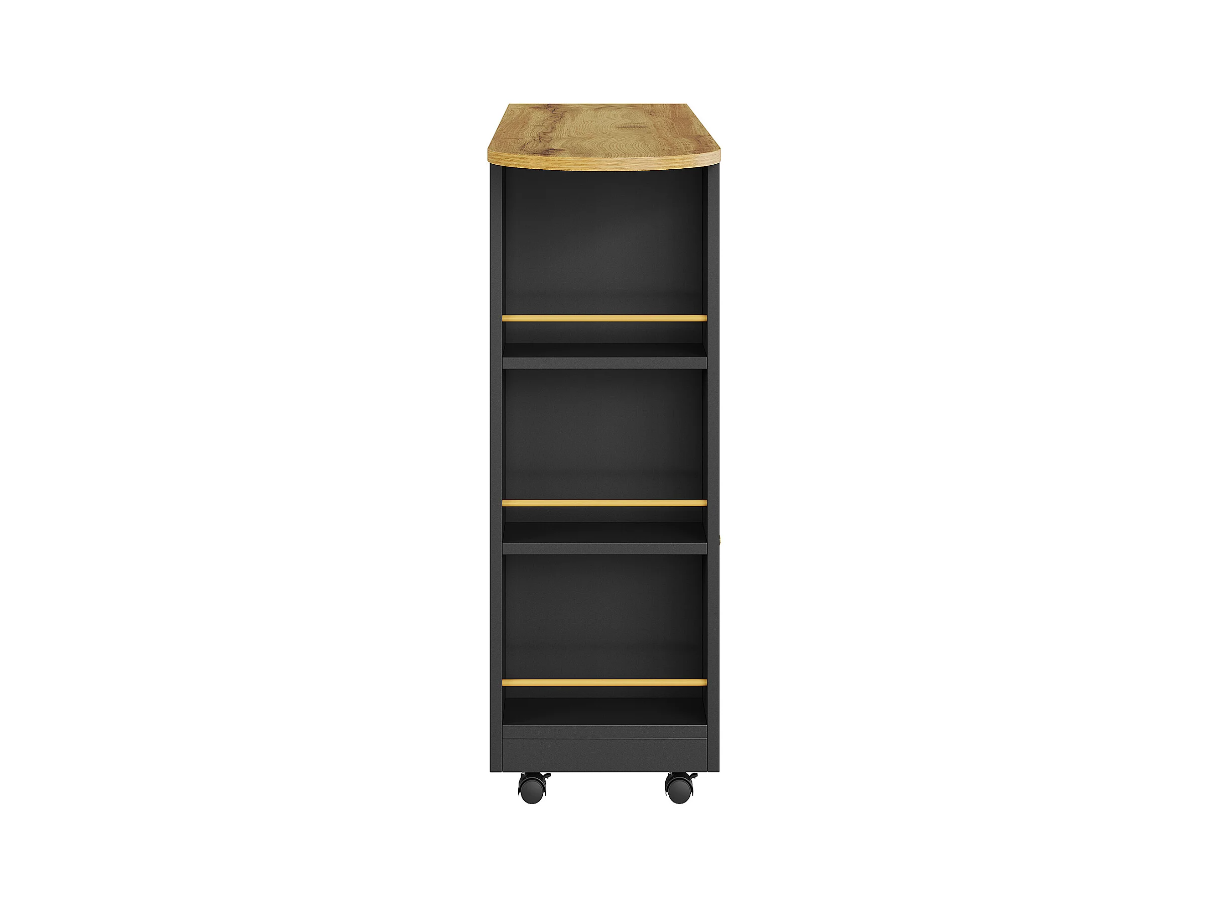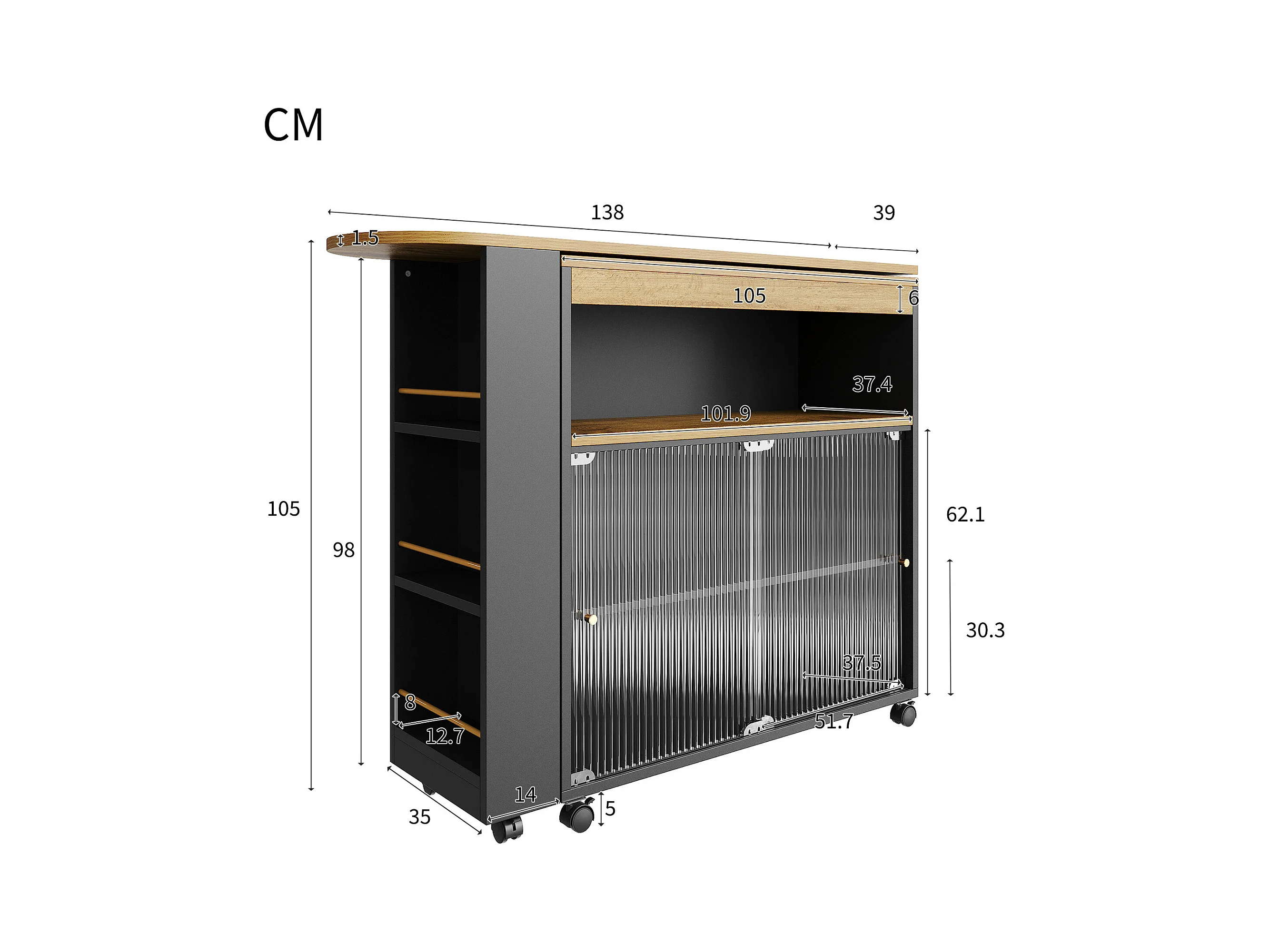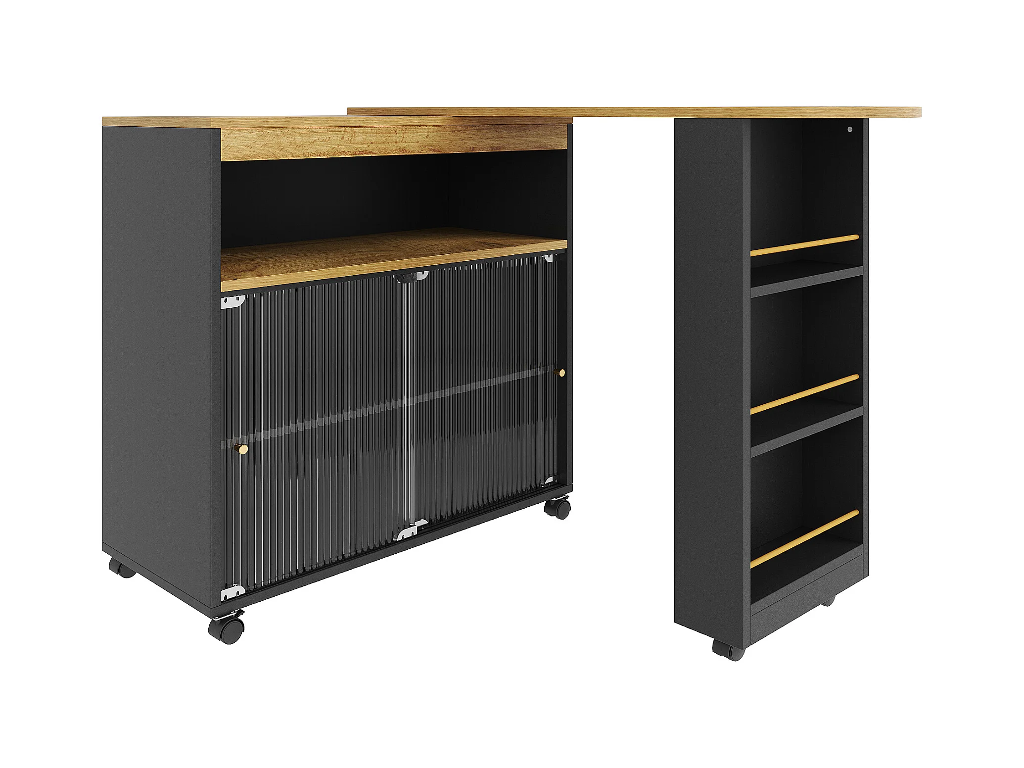 Meuble de bar rotatif - Table de bar extensible avec éclairage LED et porte coulissante en verre - 4 rangements ouverts - noir