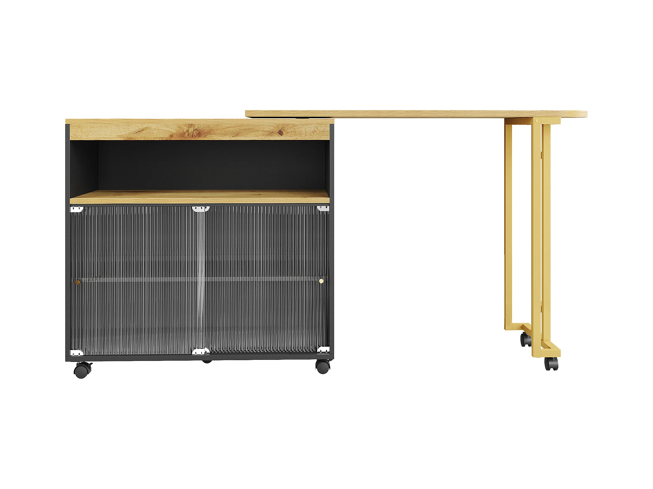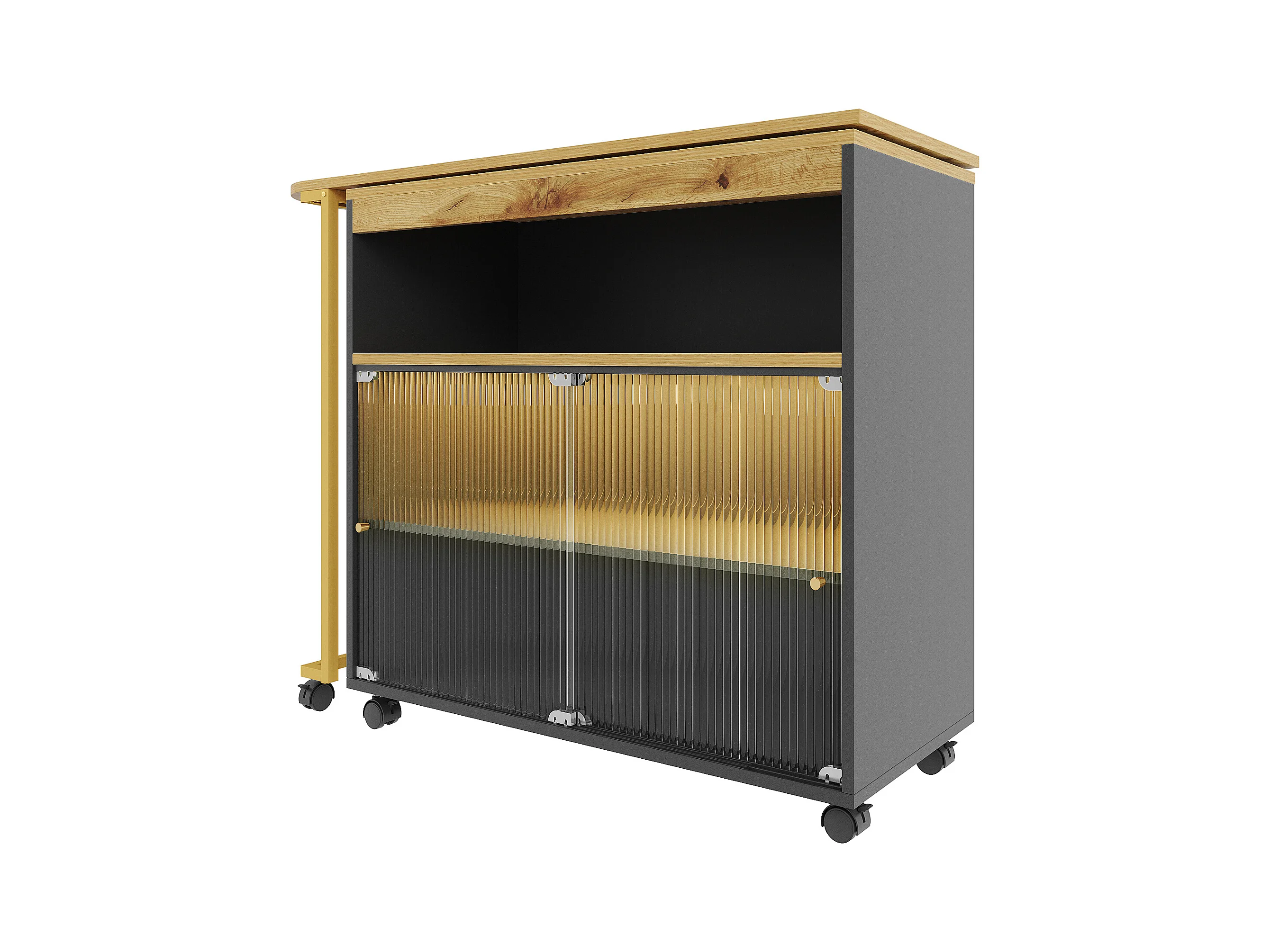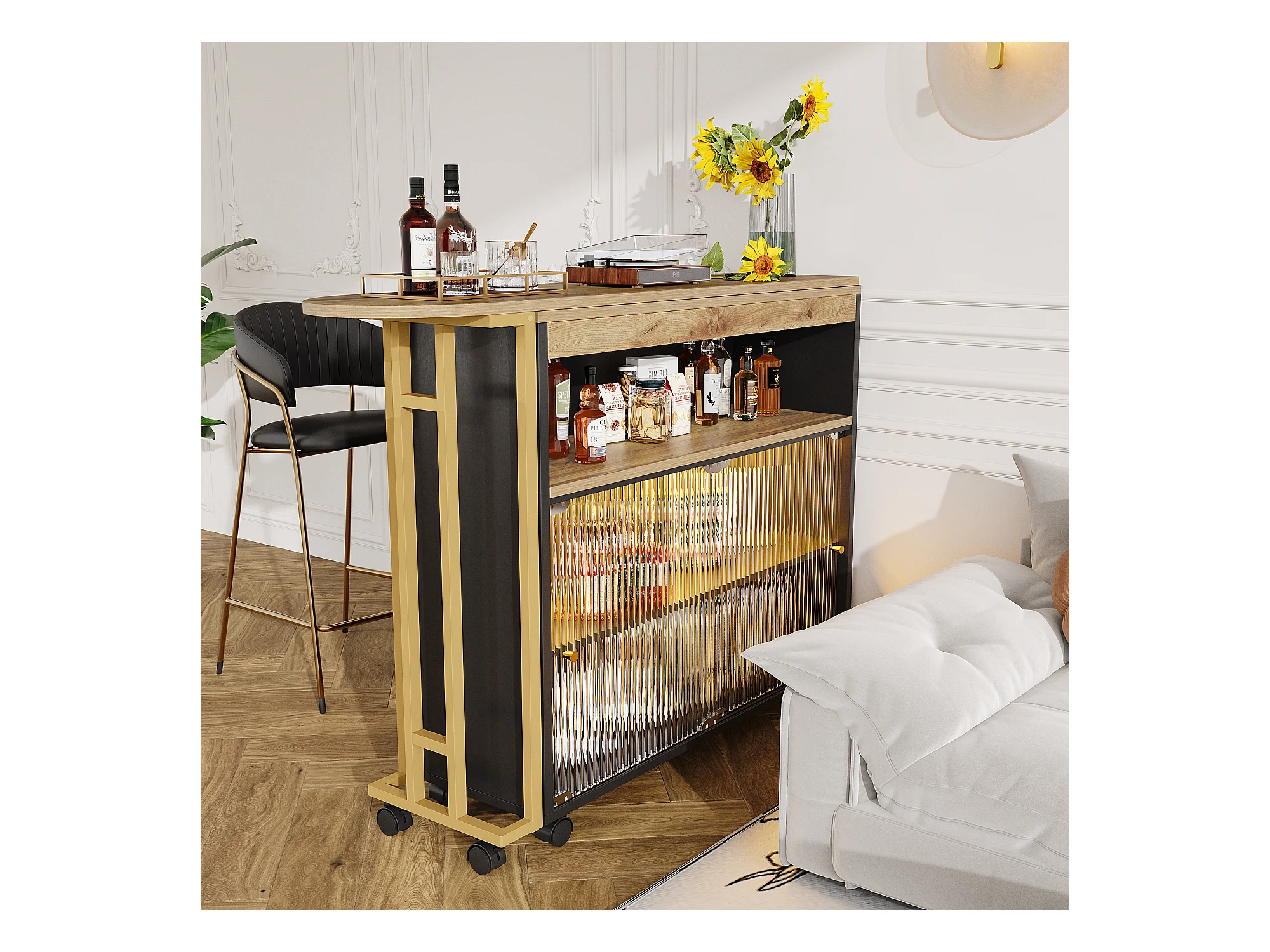 Meuble de bar rotatif - Table de bar extensible avec éclairage LED et portes coulissantes en verre - rangement ouvert - noir