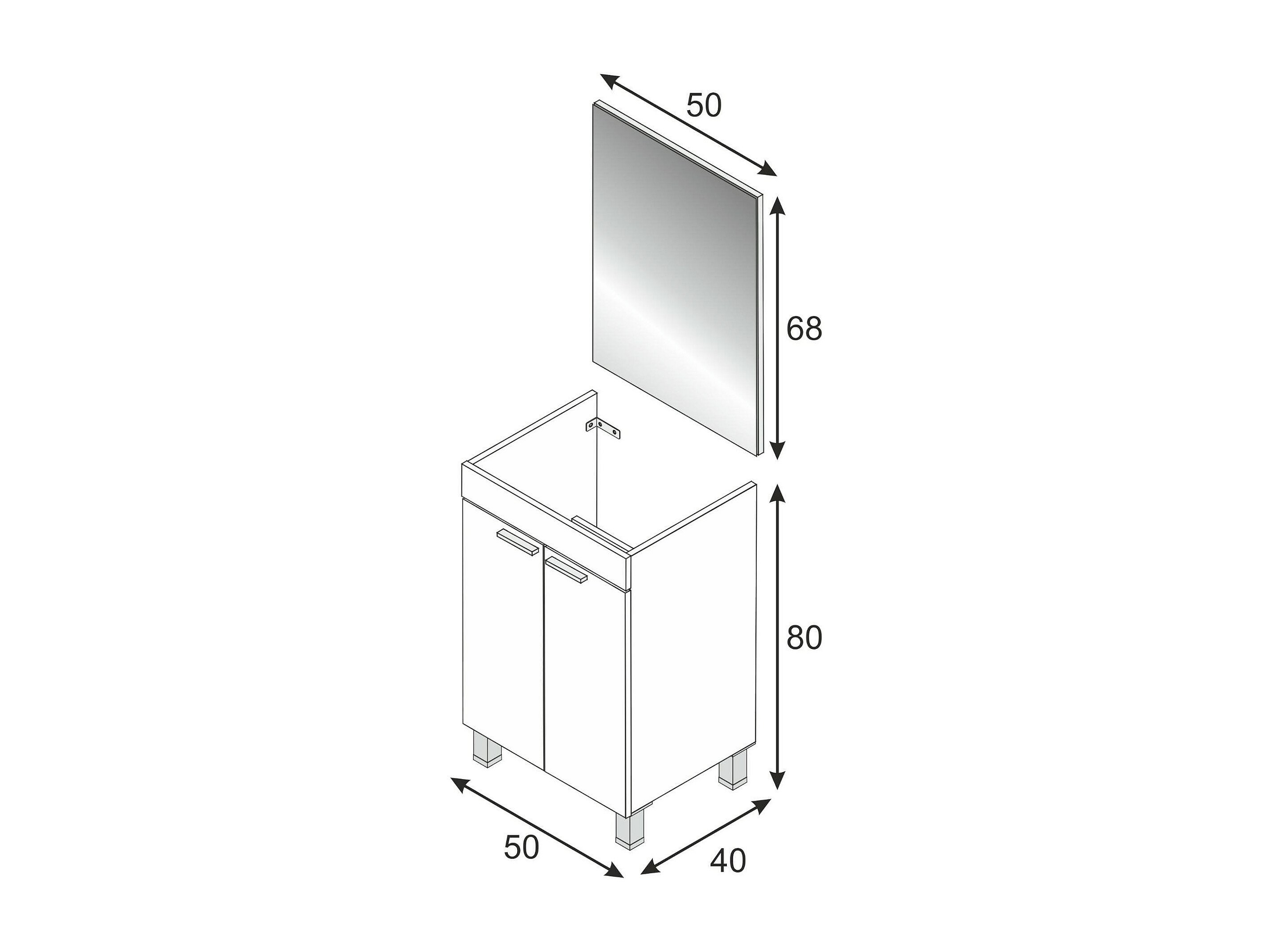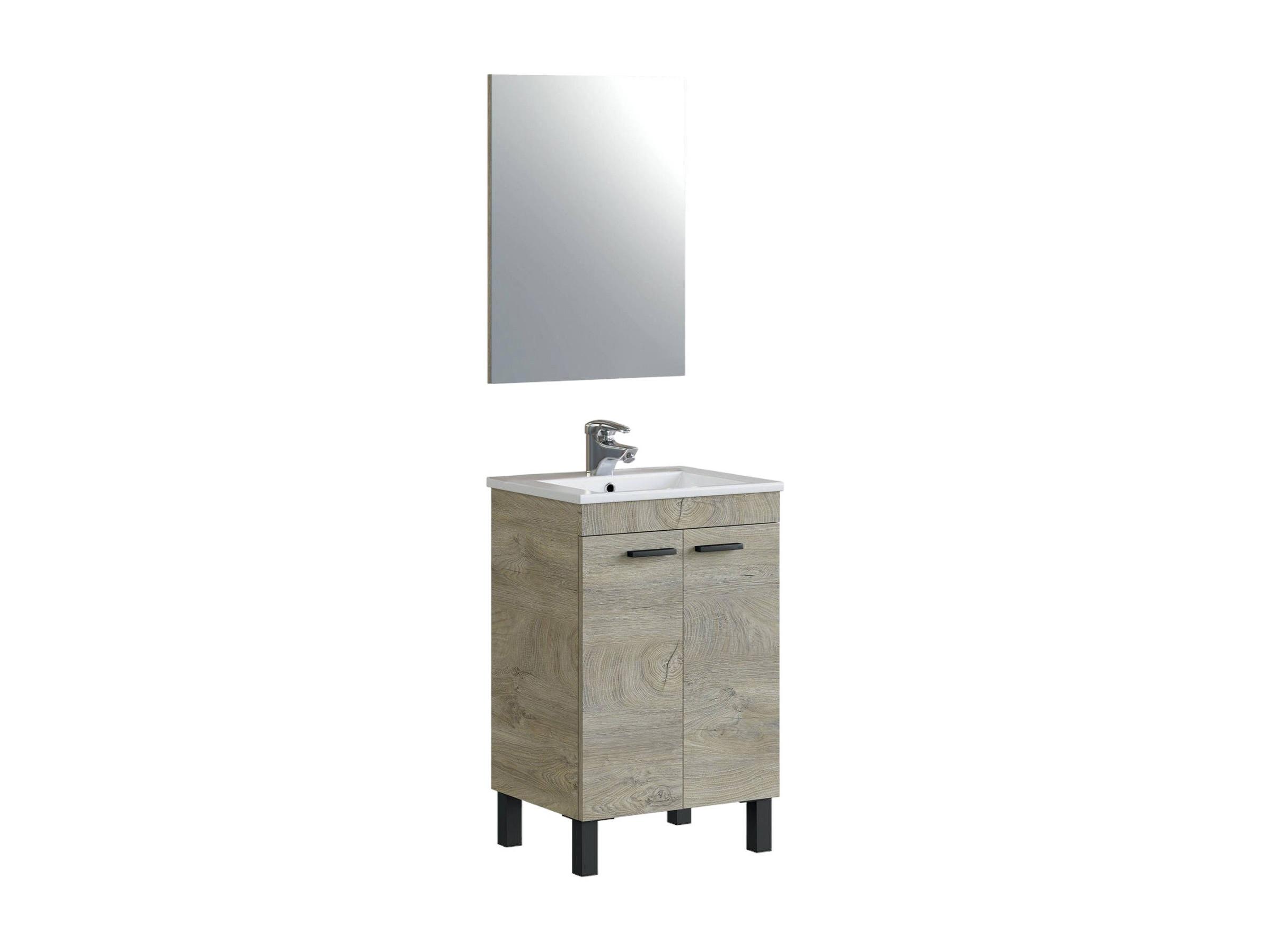 Meuble sous-vasque Dkolaro, Meuble de salle de bain, armoire 2 portes avec miroir, lavabo non inclus, 50x40h80 cm, Chêne