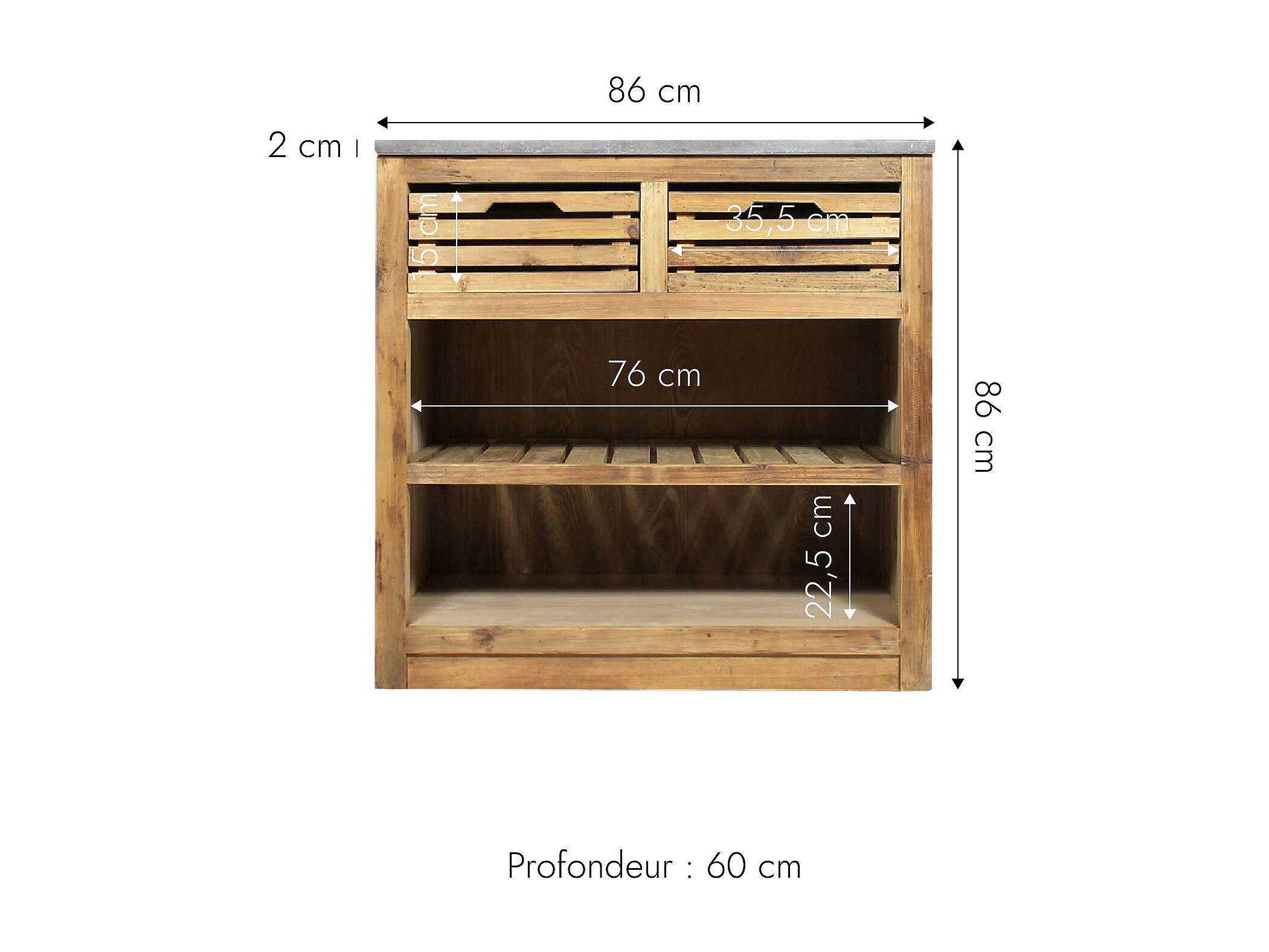 Meuble bas de cuisine 2 tiroirs + 1 étagère Champêtre