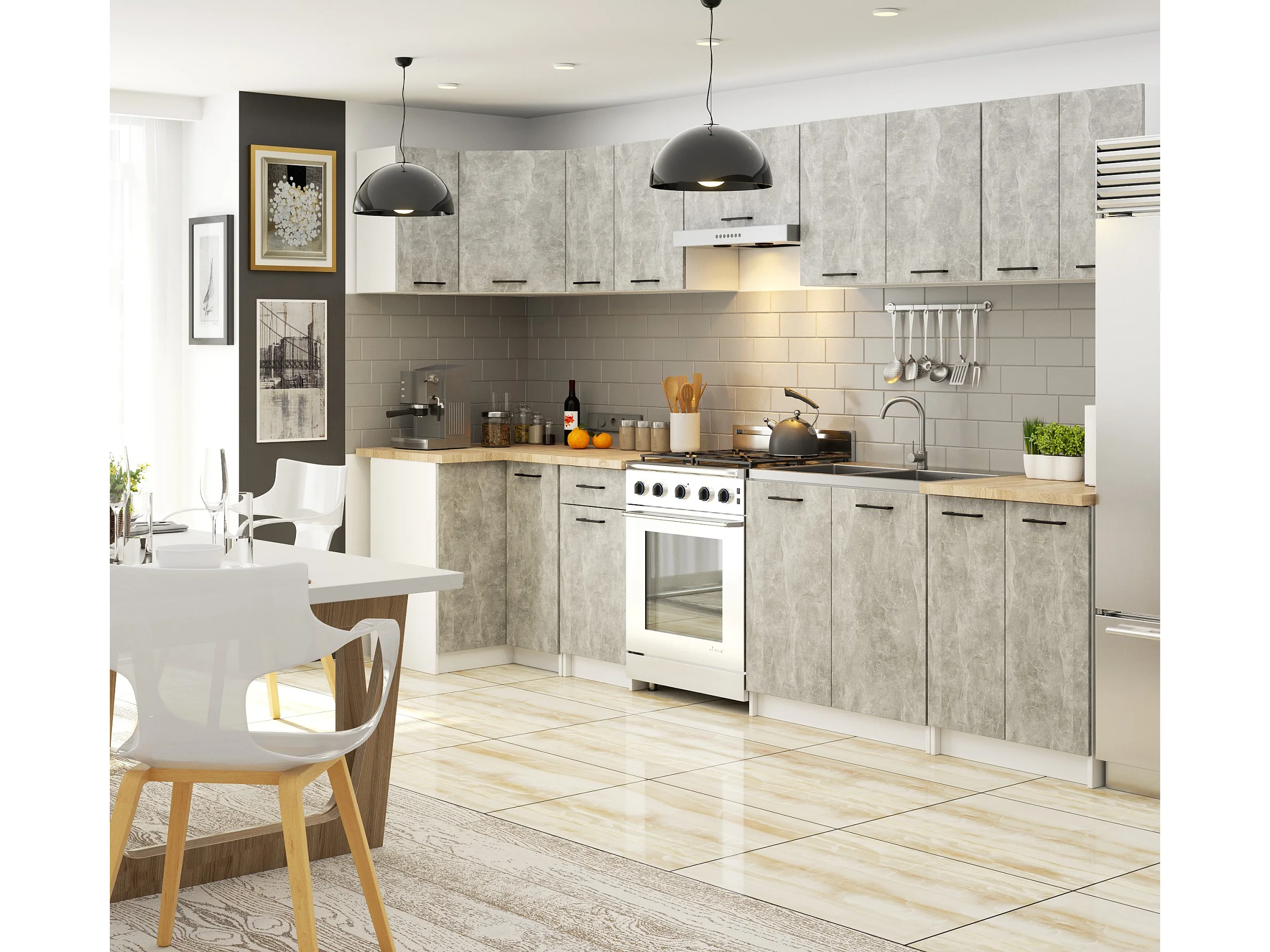 Armoires de cuisine AKORD d'angle haute W60 OLIWIA Blanc 60 cm 1 porte façade Béton 2 étagères 60x30x58 cm