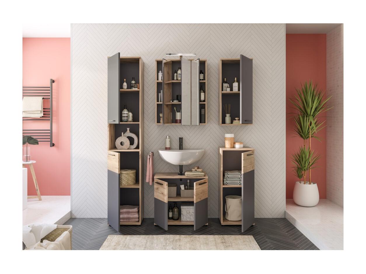 Meuble de rangement 1 porte – Gris anthracite et chêne clair – SELMA