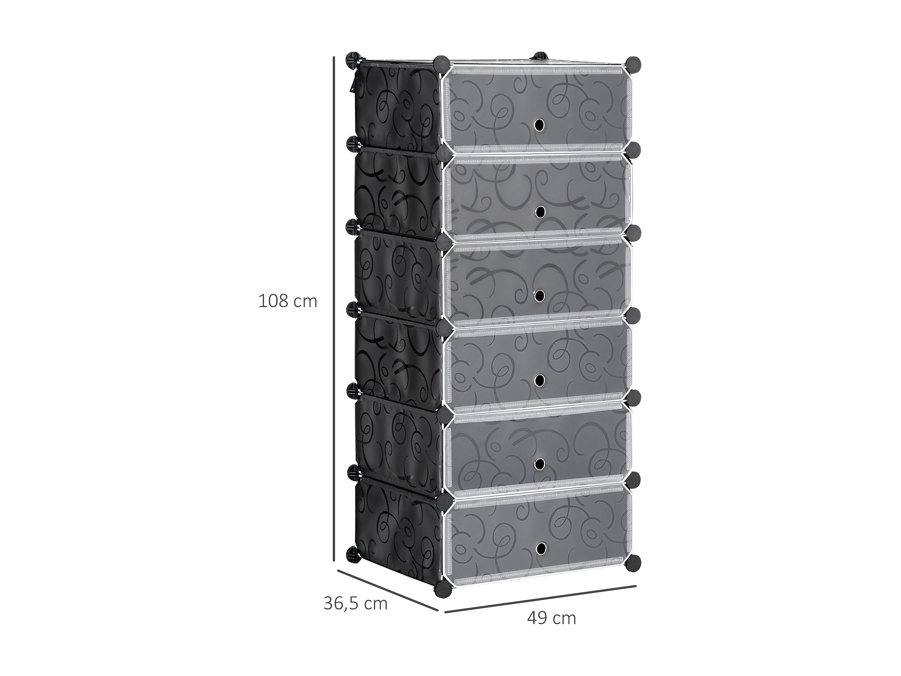 Meuble de rangement à chaussures modulable 6 casiers rectangulaires empilables noir blanc