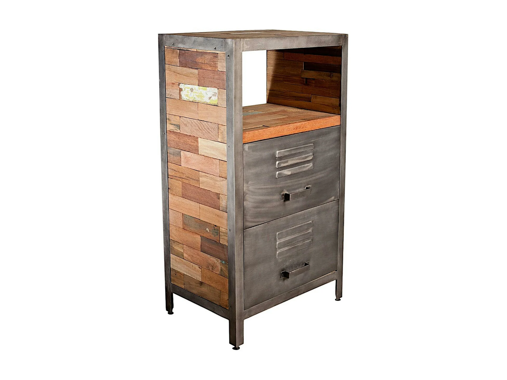 Meuble de rangement bois recyclé 1 niche et 2 tiroirs métal 60x40x110cm CARAVELLE