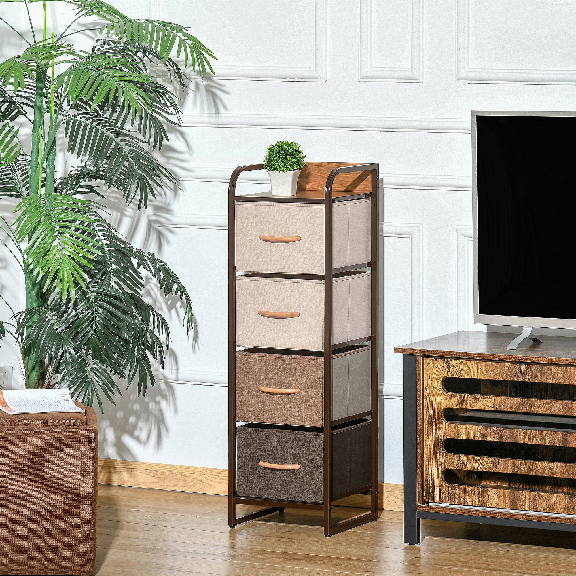 Meuble de rangement chiffonnier 4 tiroirs en tissu 58 x 29 x 78,5 cm marron beige brun