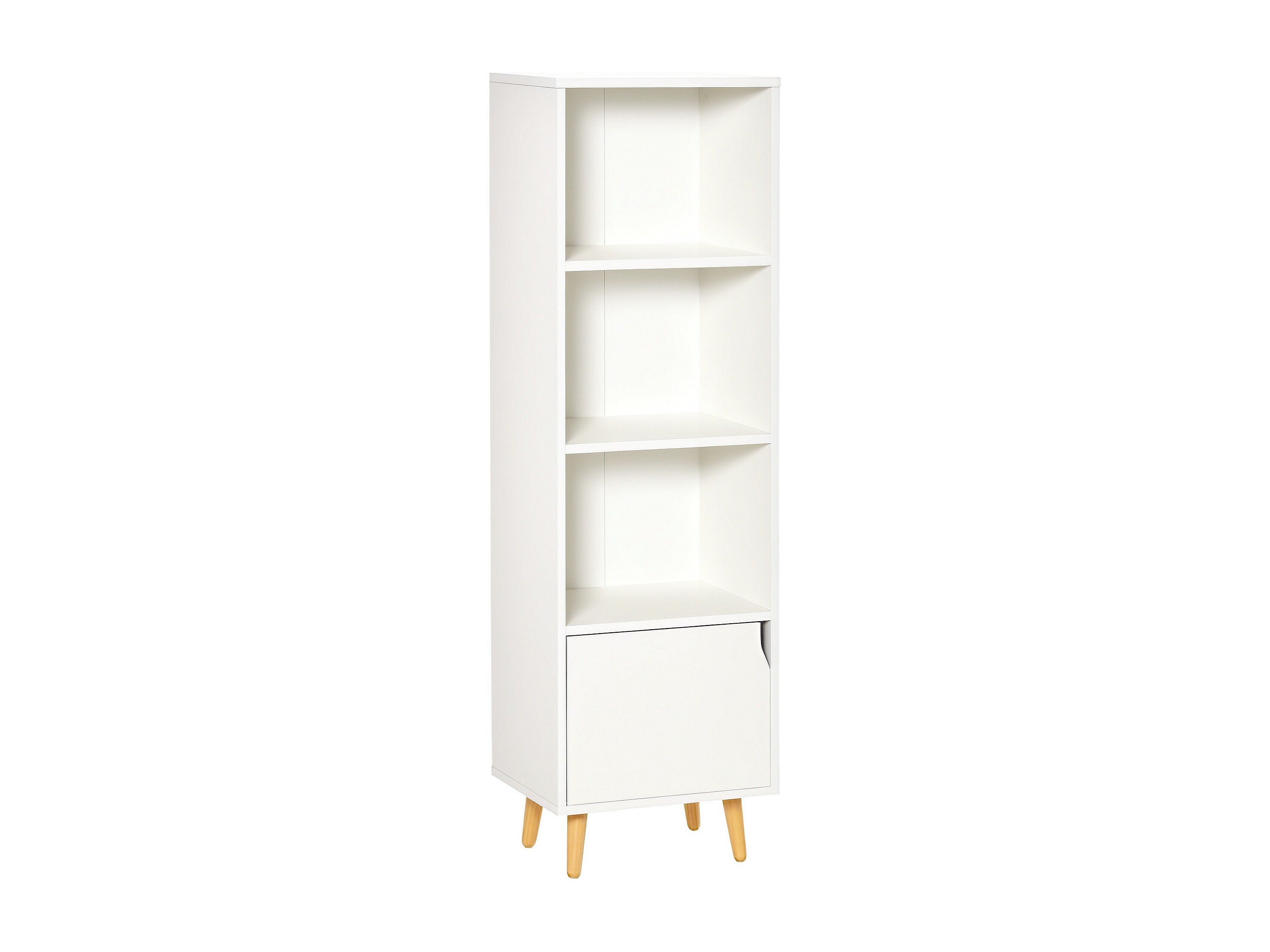 Bibliothèque étagère scandinave design maison 5 niches étagère pieds effilés bois pin MDF blanc