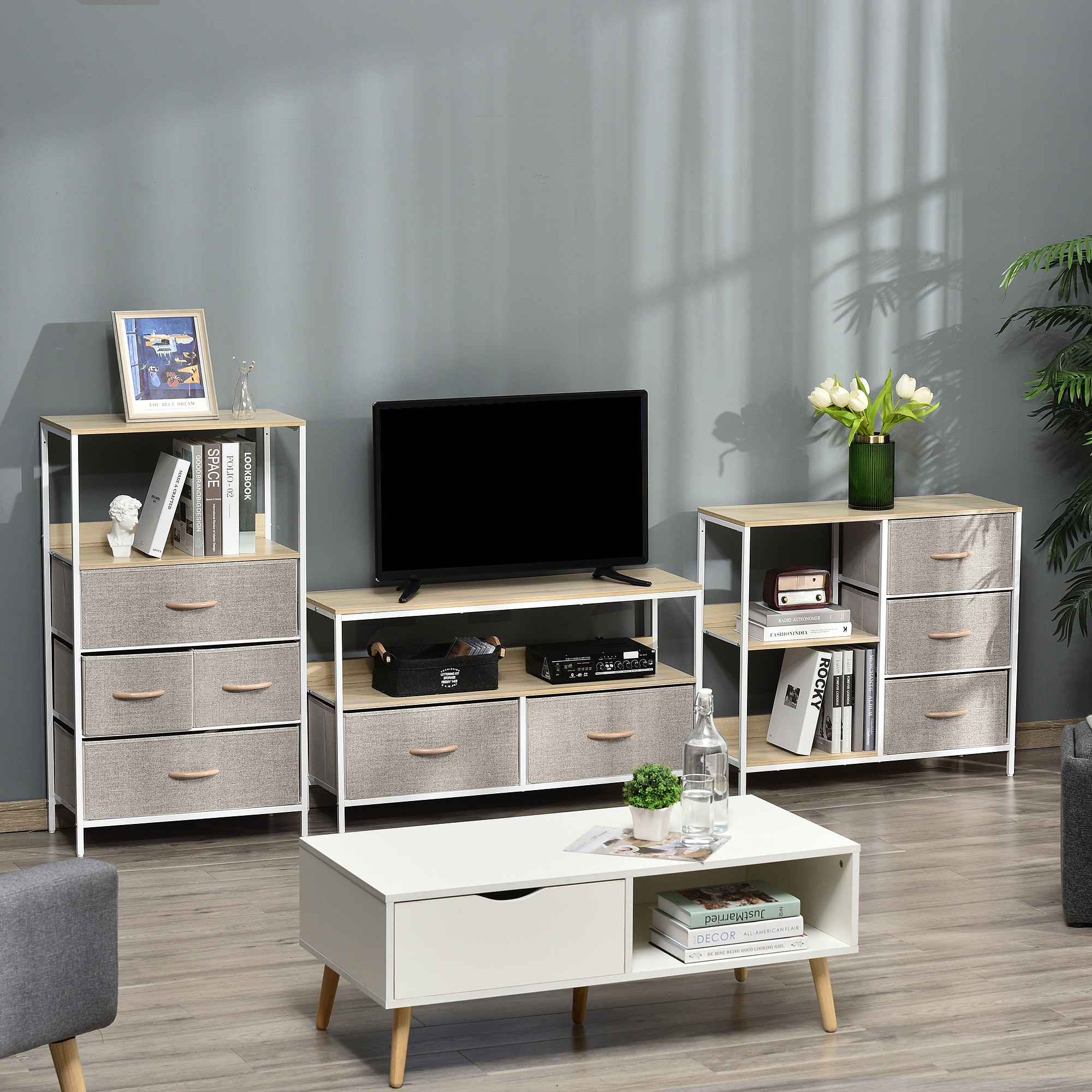 Meuble de rangement commode design - 3 tiroirs, 2 étagères - métal MDF non tissé beige