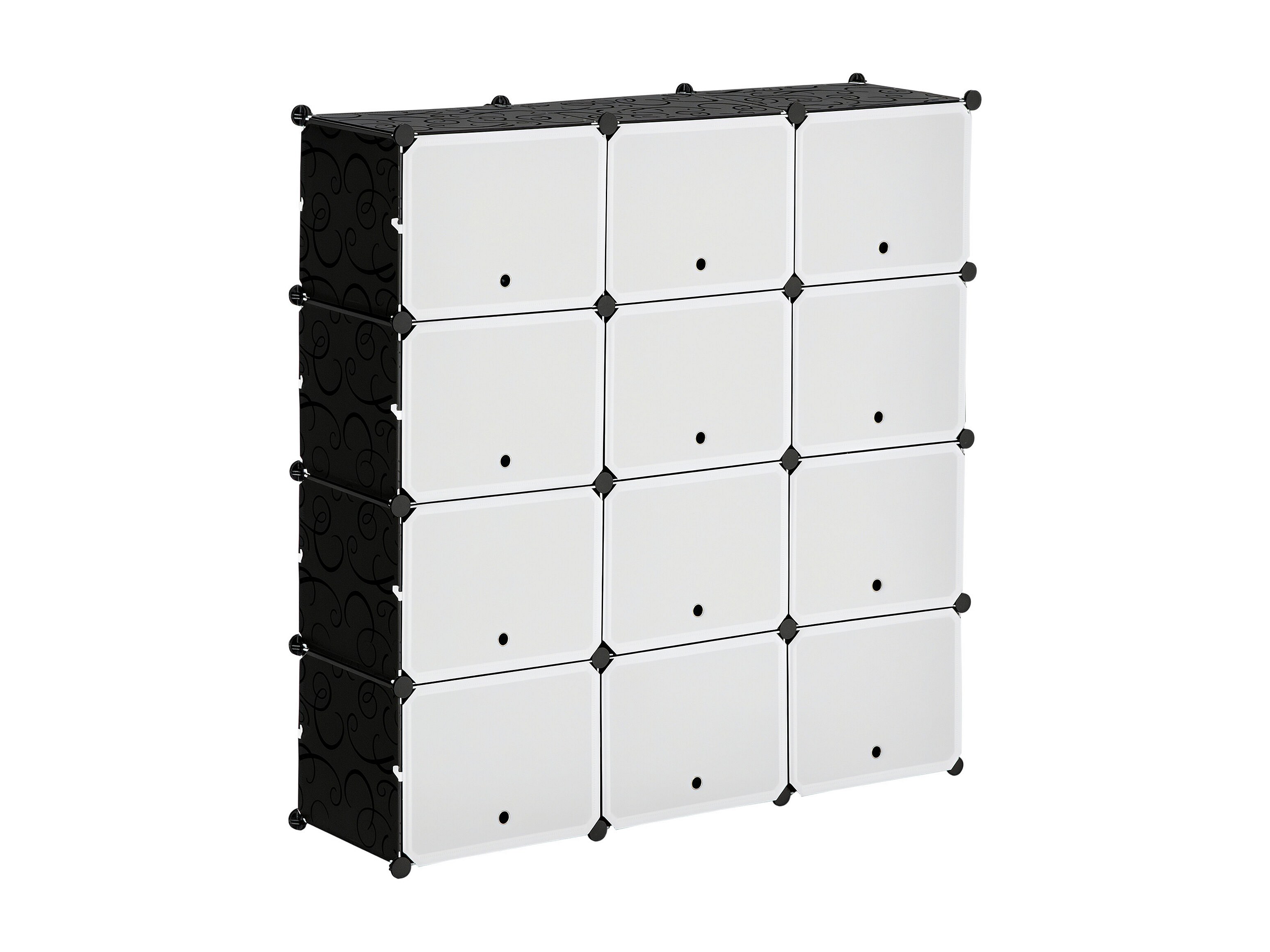 Meuble de rangement - meuble à chaussures modulable 12 casiers avec portes et étagères - dim. 94L x 37l x 108H cm - PP noir blanc