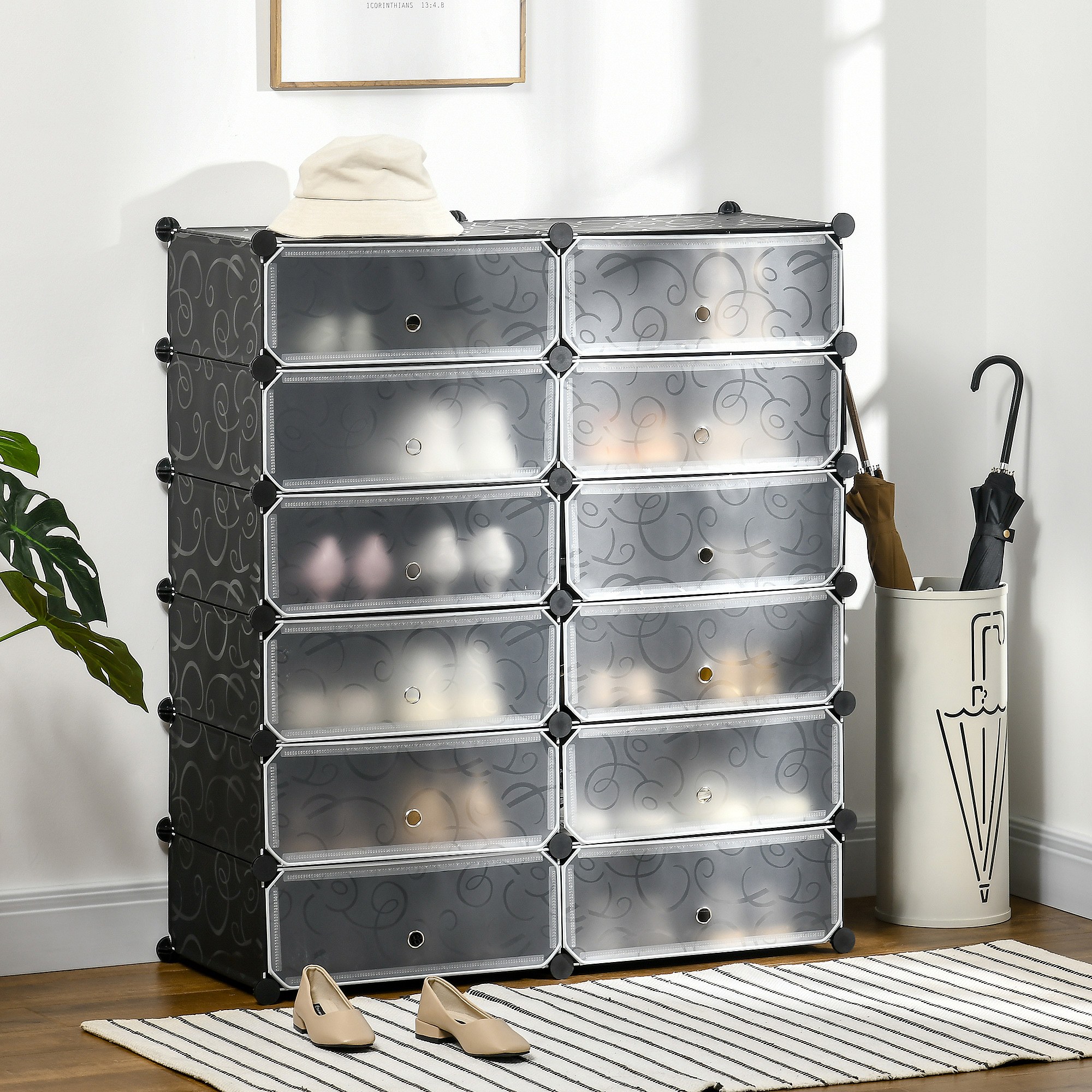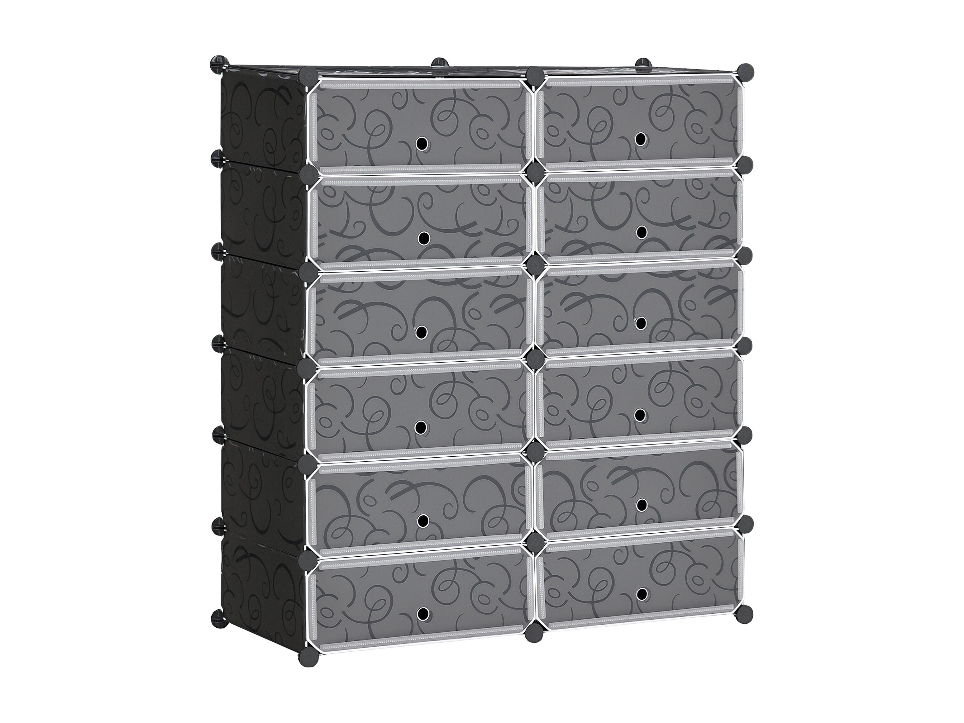 Meuble de rangement - meuble à chaussures modulable 12 casiers avec portes et étagères - dim. 94L x 37l x 108H cm - PP noir blanc