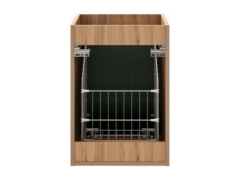 Meuble de rangement NOXERA – 40 cm – Avec panier à linge – Coloris chêne wotan – Meuble suspendu