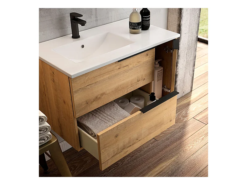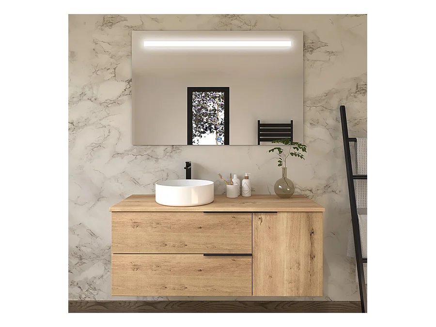 Meuble de salle de bain 100 cm avec vasque à poser ronde - 2 tiroirs - KING et miroir Led STAM