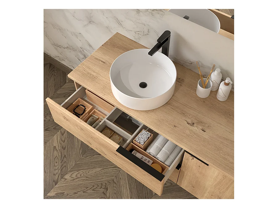 Meuble de salle de bain 100cm avec vasque à poser ronde - 2 tiroirs - roble (chêne clair) - KING