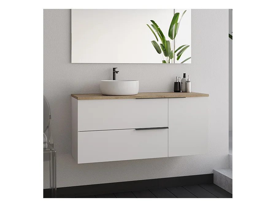 Meuble de salle de bain 100cm avec vasque à poser ronde - blanc - KING et miroir Led STAM