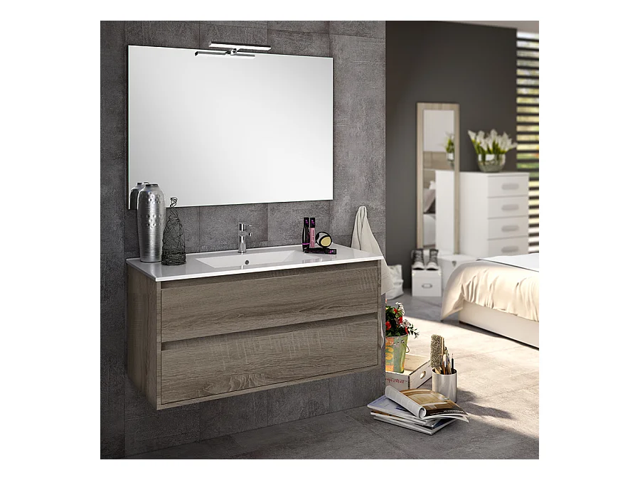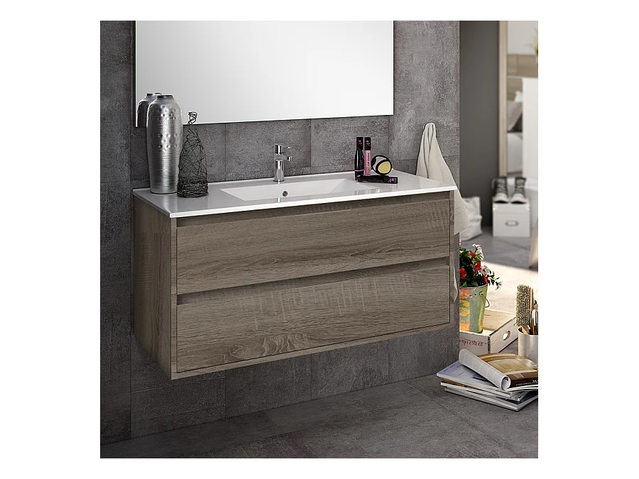 Meuble de salle de bain 100cm simple vasque - 2 tiroirs - IRIS - britannia (chêne foncé)