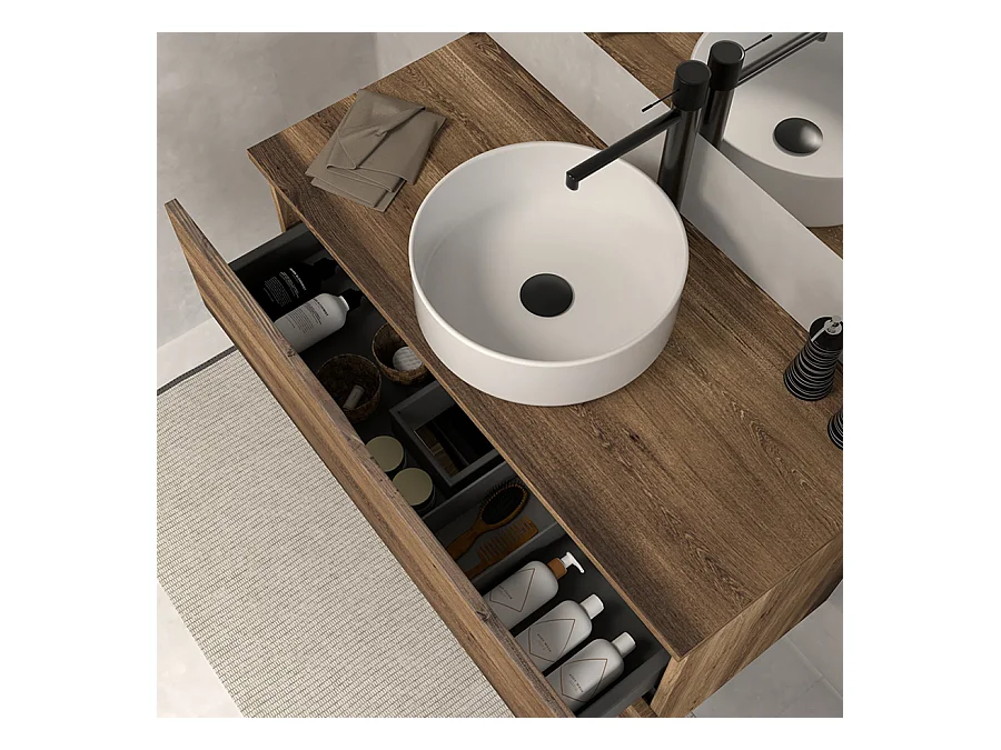 Meuble de salle de bain 120 avec plateau et vasque à poser - sans miroir - 2 tiroirs - tabaco (bois foncé) - LUNA