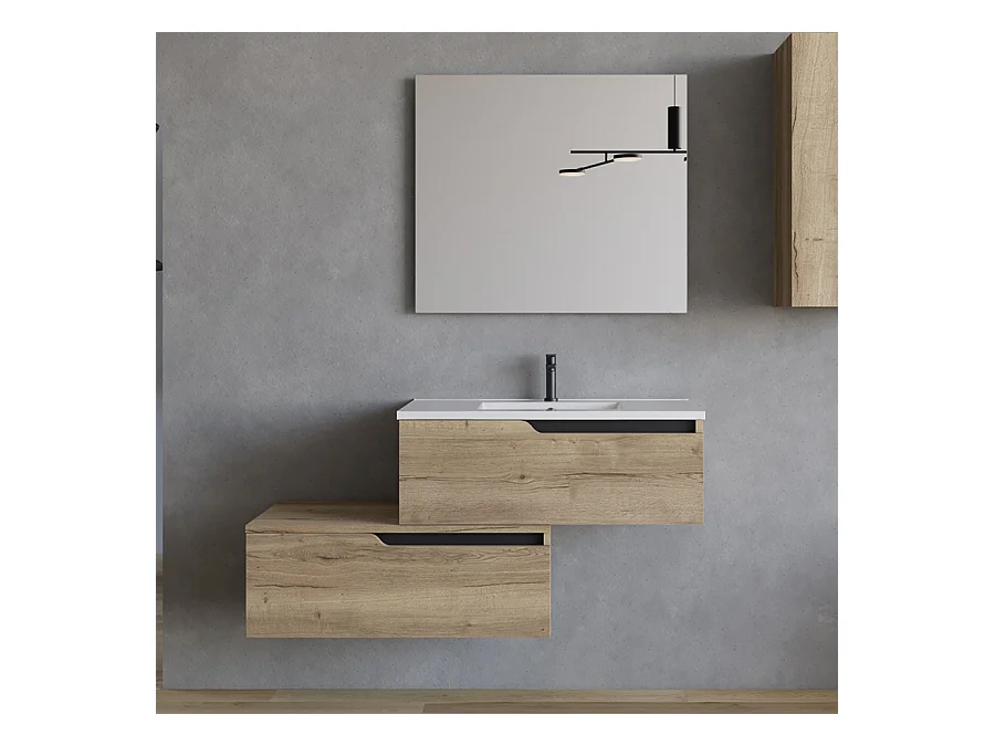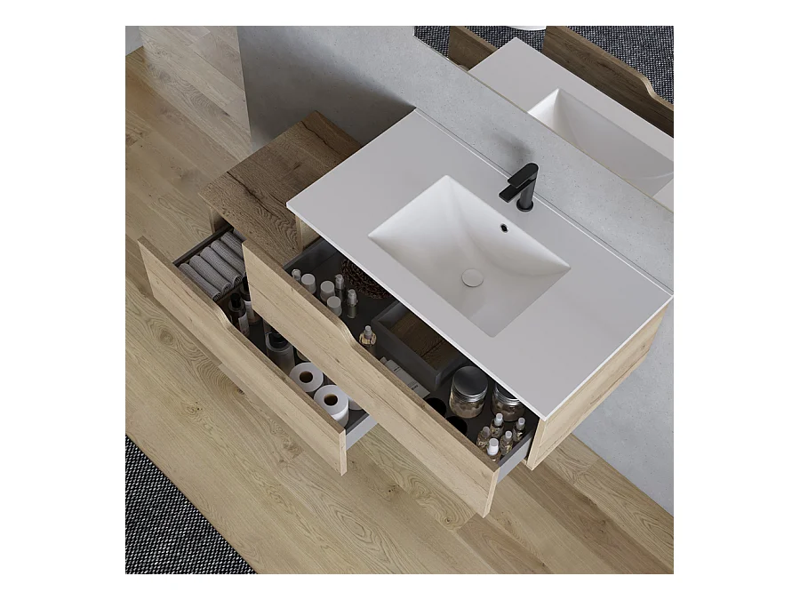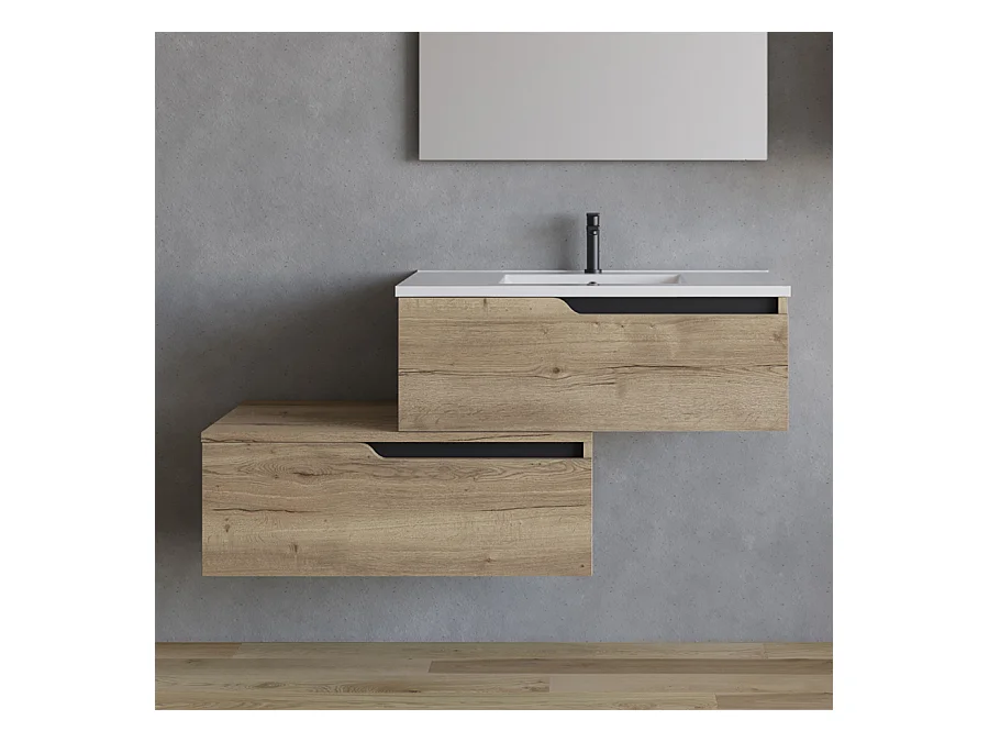 Meuble de salle de bain 120cm avec plan simple vasque - 2 tiroirs - madera miel (chêne clair) - CADIX