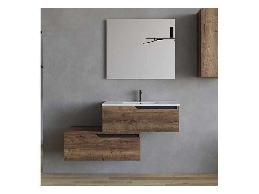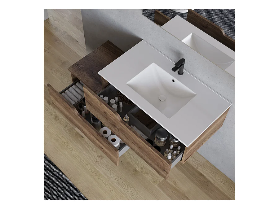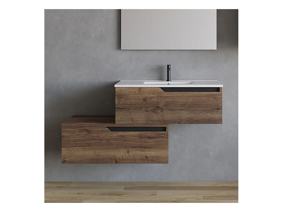 Meuble de salle de bain 120cm avec plan simple vasque - 2 tiroirs - tabaco (bois foncé) - CADIX