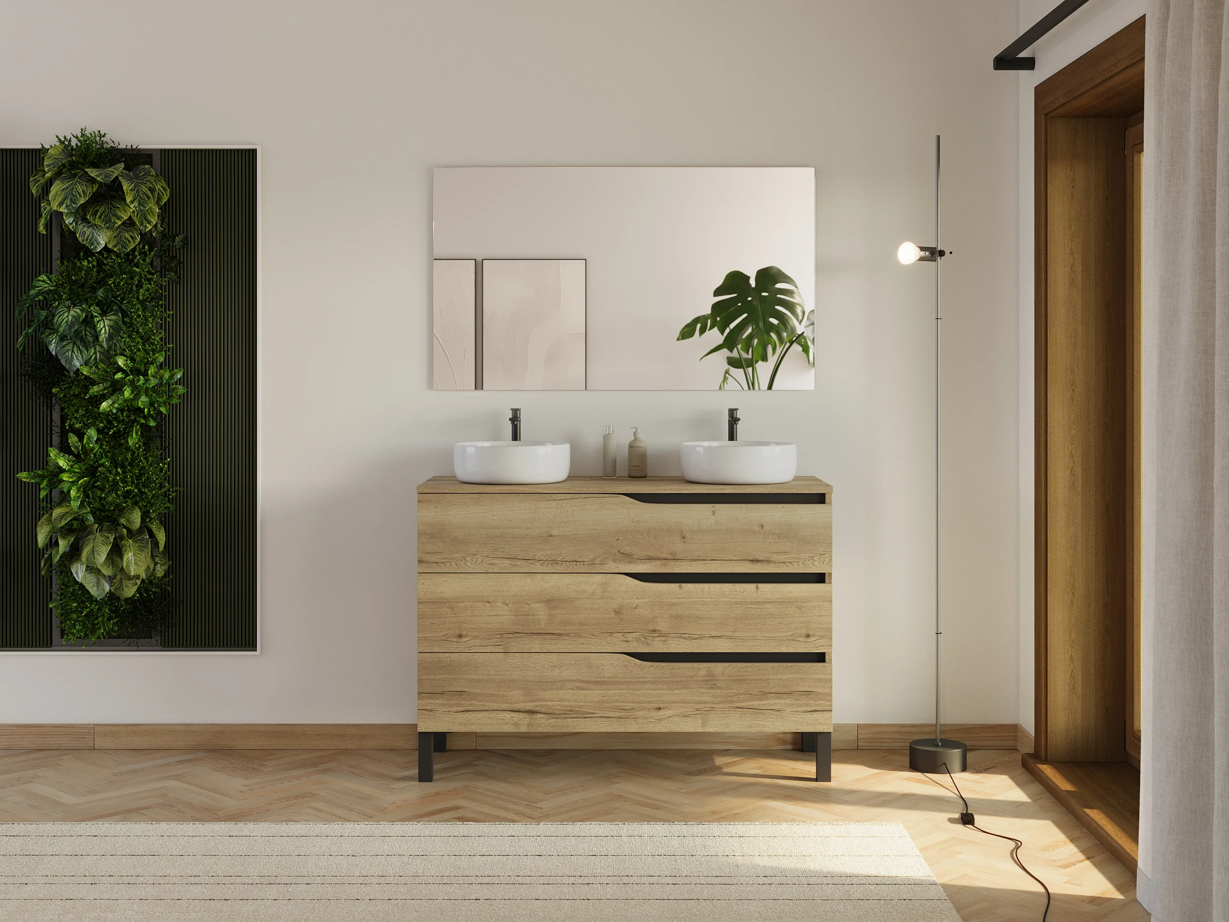 Meuble de salle de bain 120cm avec plateau et 2 vasques à poser Ares - 3 tiroirs - madera miel (bois clair) - MATA