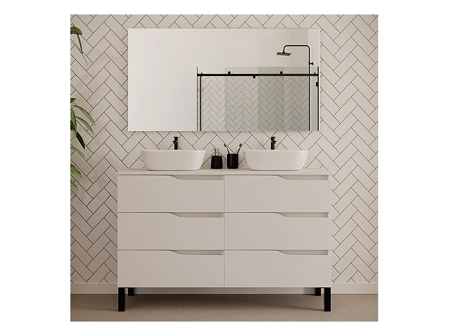 Meuble de salle de bain 120cm avec plateau et deux vasques à poser zeus - 6 tiroirs - blanc - MATA