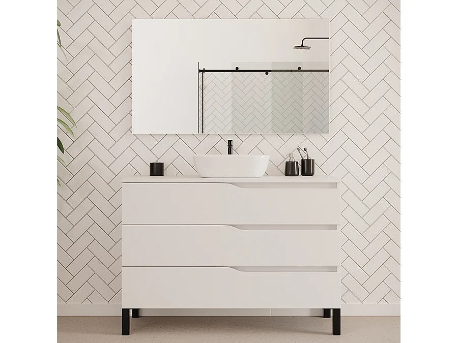 Meuble de salle de bain 120cm avec plateau et vasque à poser zeus - 3 tiroirs - blanc - MATA