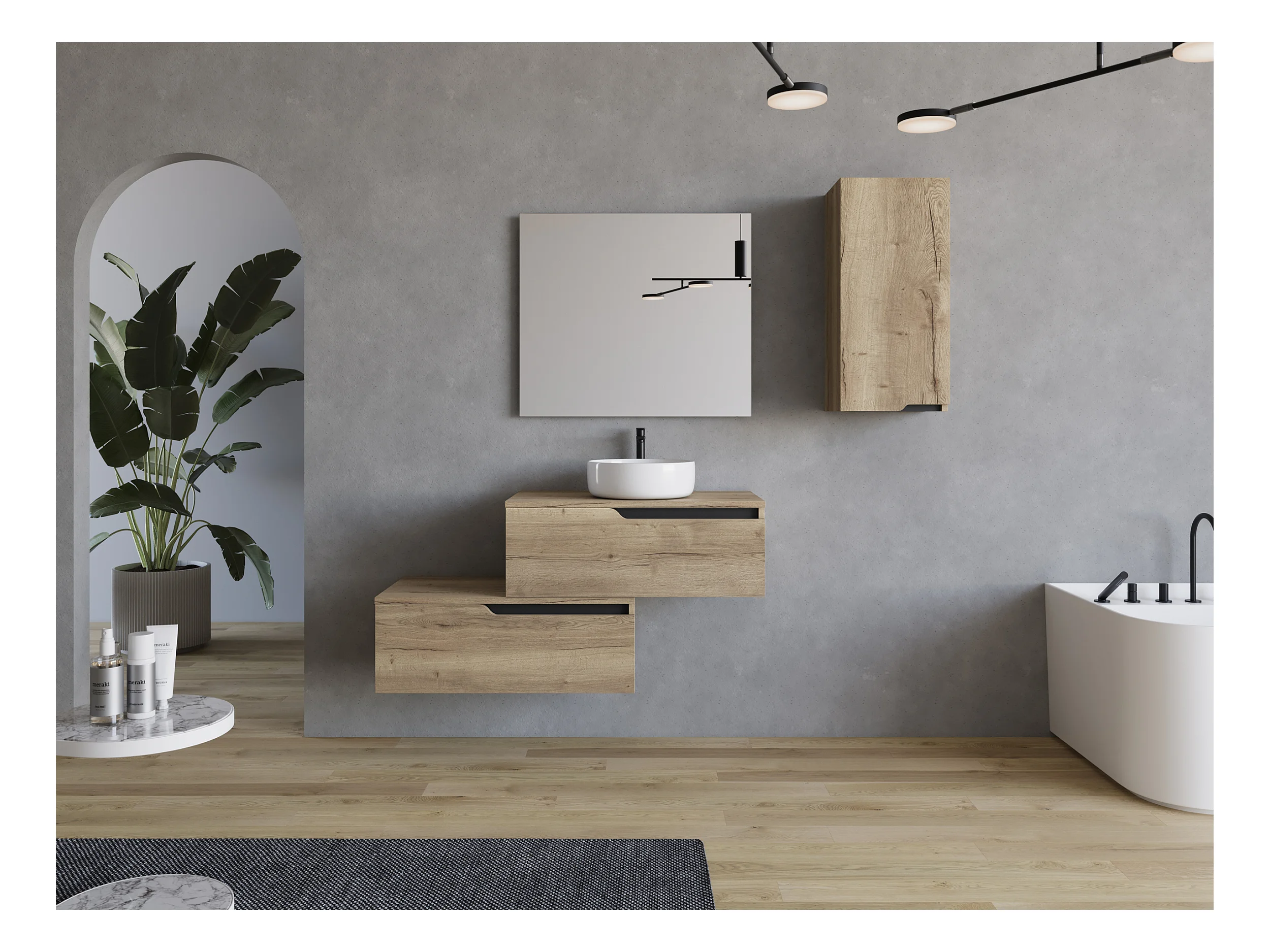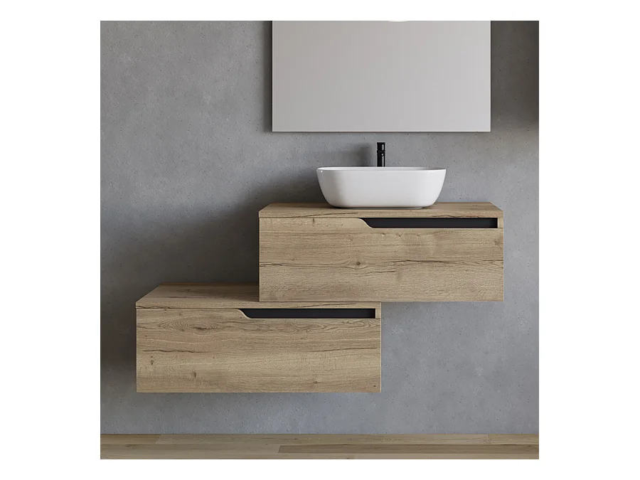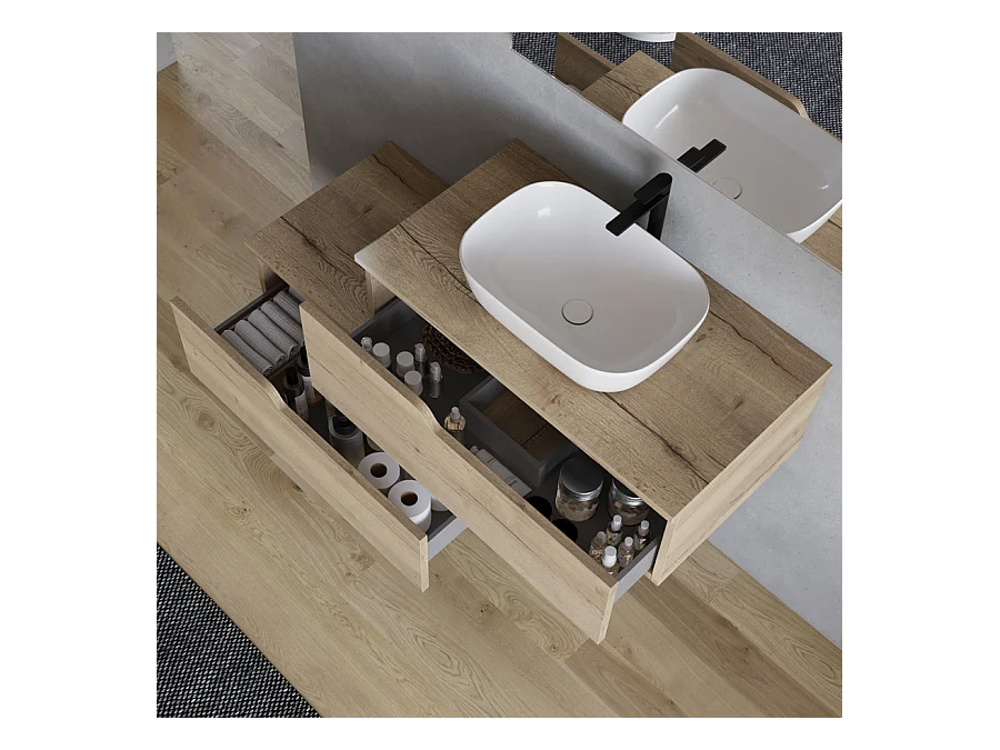 Meuble de salle de bain 120cm avec vasque à poser arrondie - 2 tiroirs - madera miel (chêne clair) - CADIX