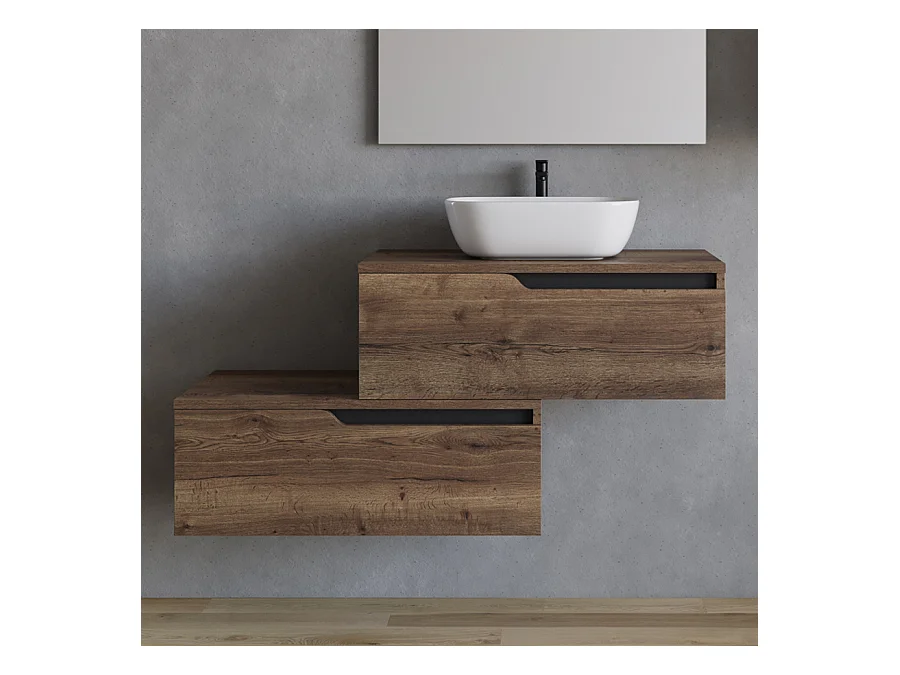 Meuble de salle de bain 120cm avec vasque à poser arrondie - 2 tiroirs - tabaco (bois foncé) - CADIX