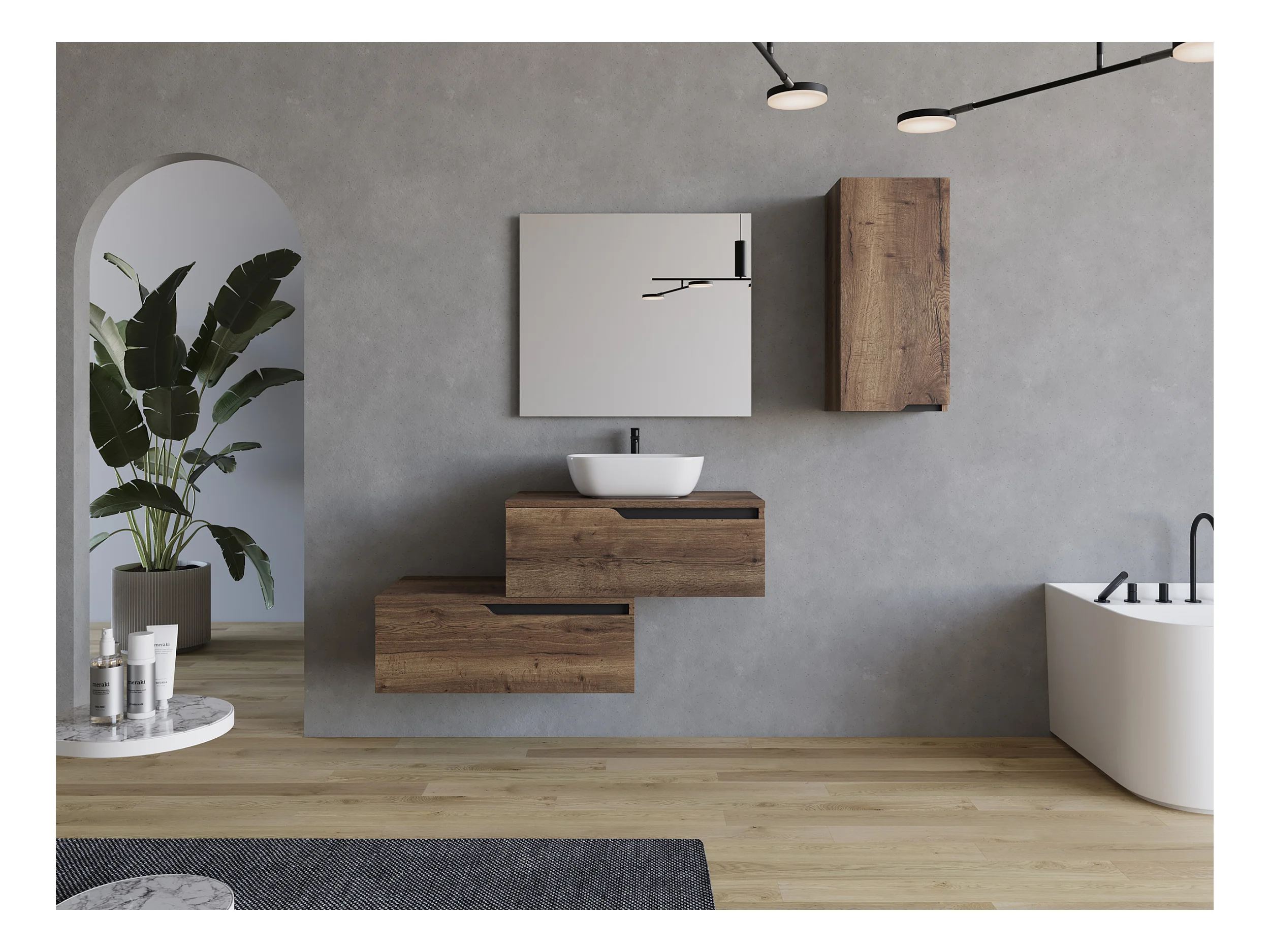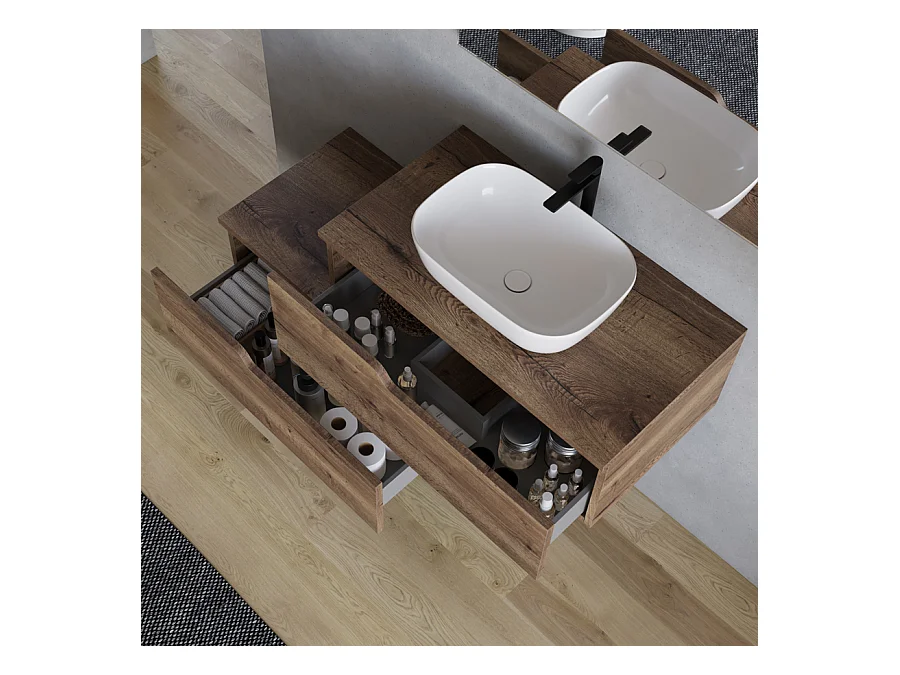 Meuble de salle de bain 120cm avec vasque à poser arrondie - sans miroir - 2 tiroirs - tabaco (bois foncé) - CADIX