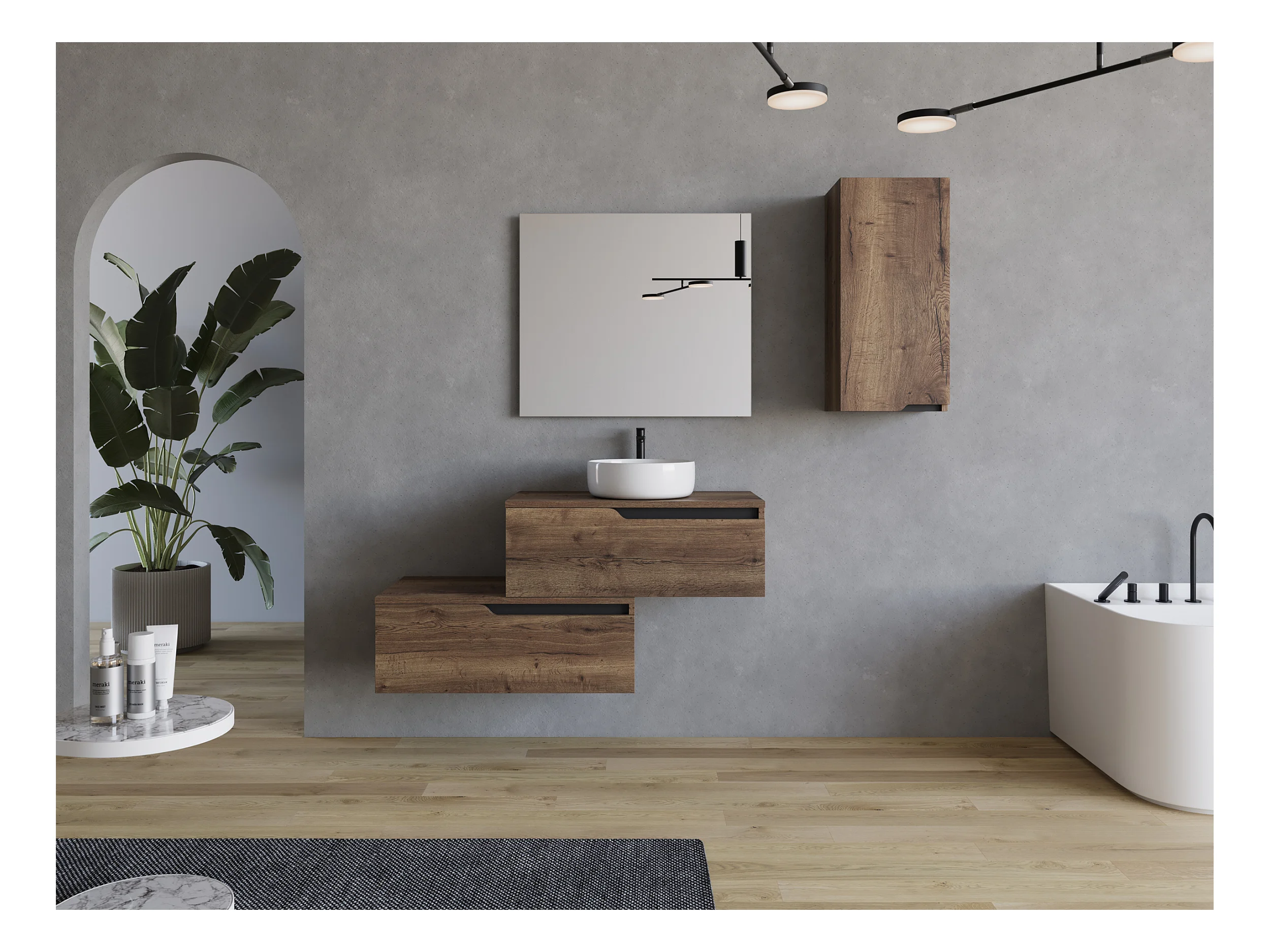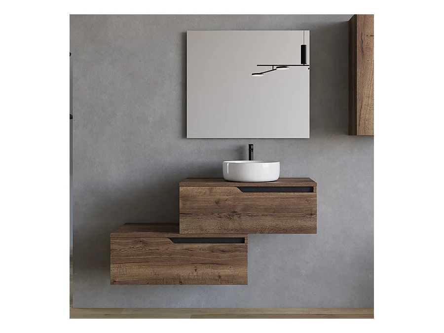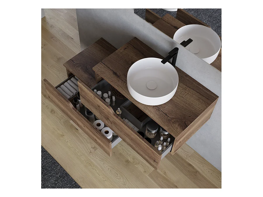 Meuble de salle de bain 120cm avec vasque à poser ronde - 2 tiroirs - tabaco (bois foncé) - CADIX