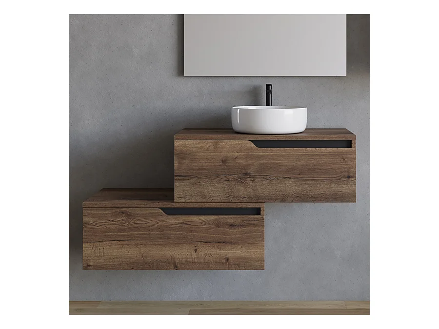 Meuble de salle de bain 120cm avec vasque à poser ronde - sans miroir - 2 tiroirs - tabaco (bois foncé) - CADIX