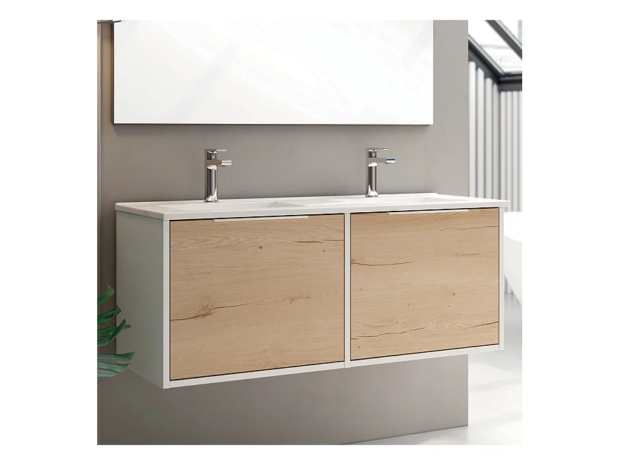 Meuble de salle de bain 120cm double vasque - 2 façades et 4 tiroirs - ALBA - blanc/roble