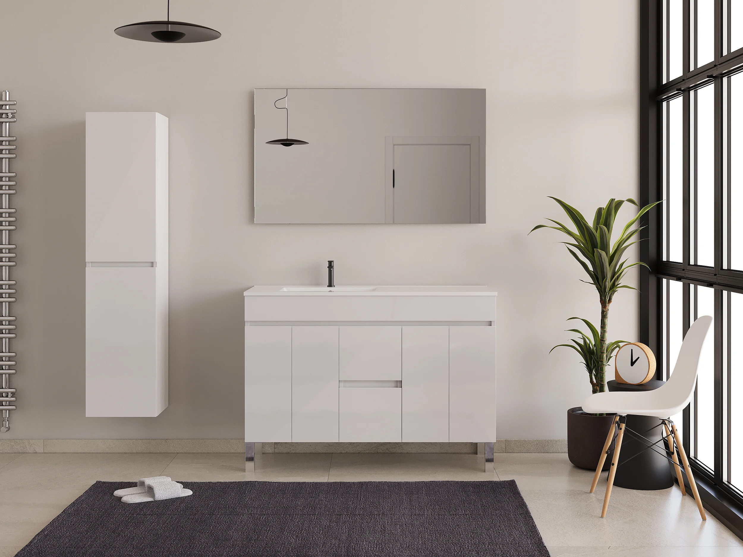 Meuble de salle de bain 120cm sur pieds avec vasque déporté - portes et tiroirs - blanc - HARO