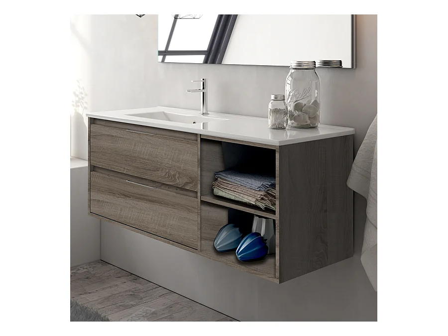 Meuble de salle de bain 120cm vasque déportée - 2 tiroirs et 2 niches - sans miroir - OLYMPE - britannia (chêne foncé)
