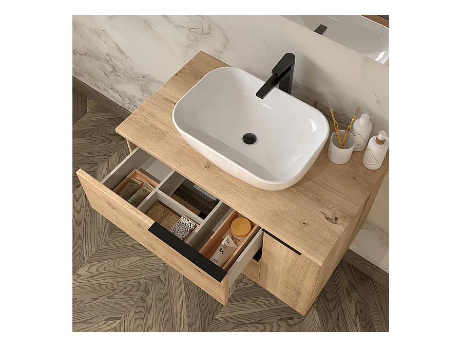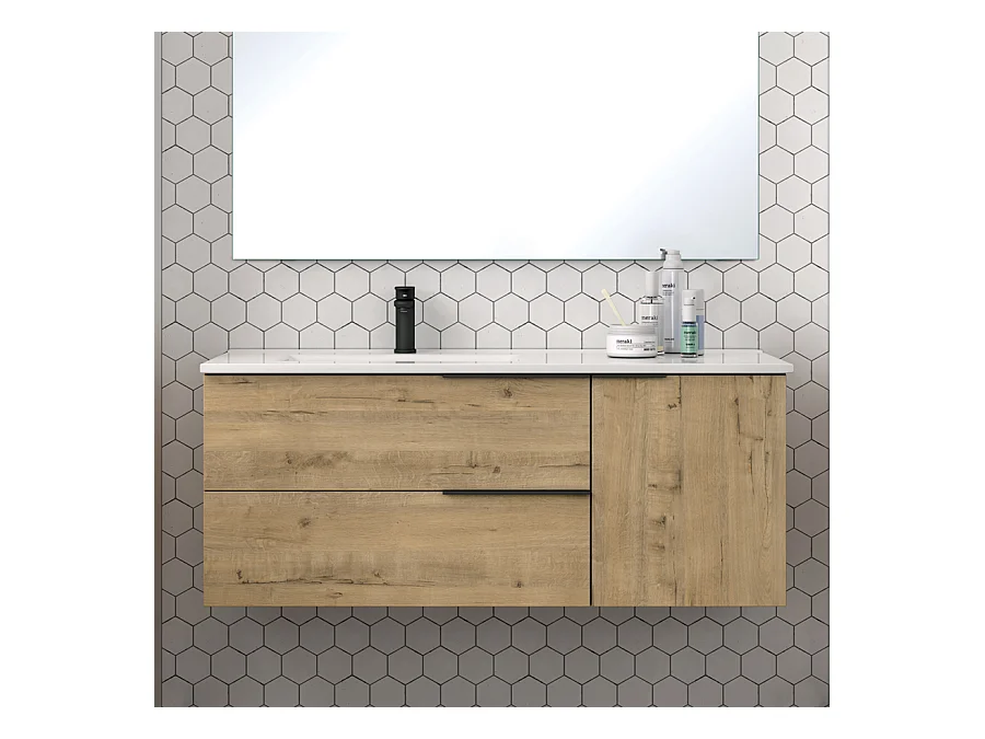 Meuble de salle de bain 120cm vasque deportée - 2 tiroirs - sans miroir - KING - Roble (chêne clair)