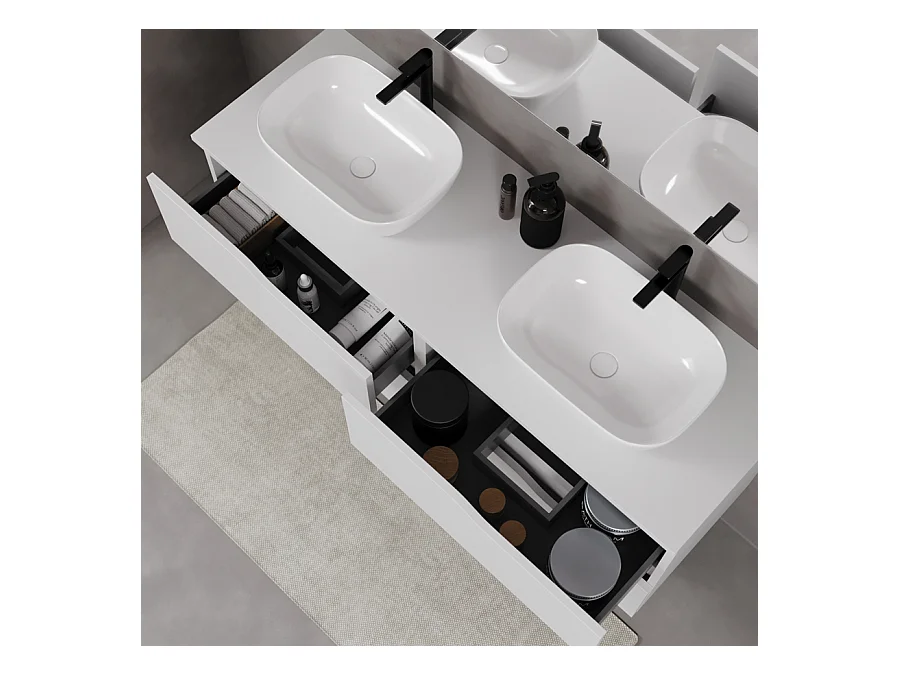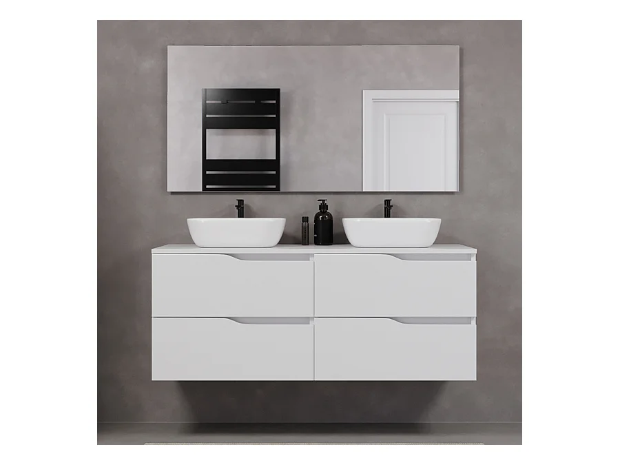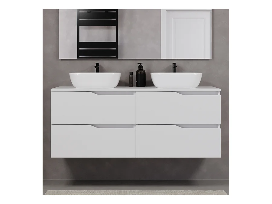 Meuble de salle de bain 140cm avec plateau et deux vasques à poser zeus - 4 tiroirs - blanc - LUNA