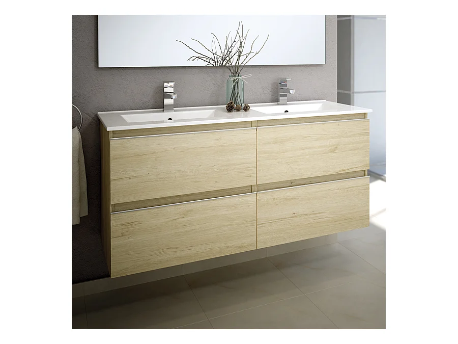Meuble de salle de bain 140cm double vasque - 4 tiroirs - BALEA - bambou (chêne clair)