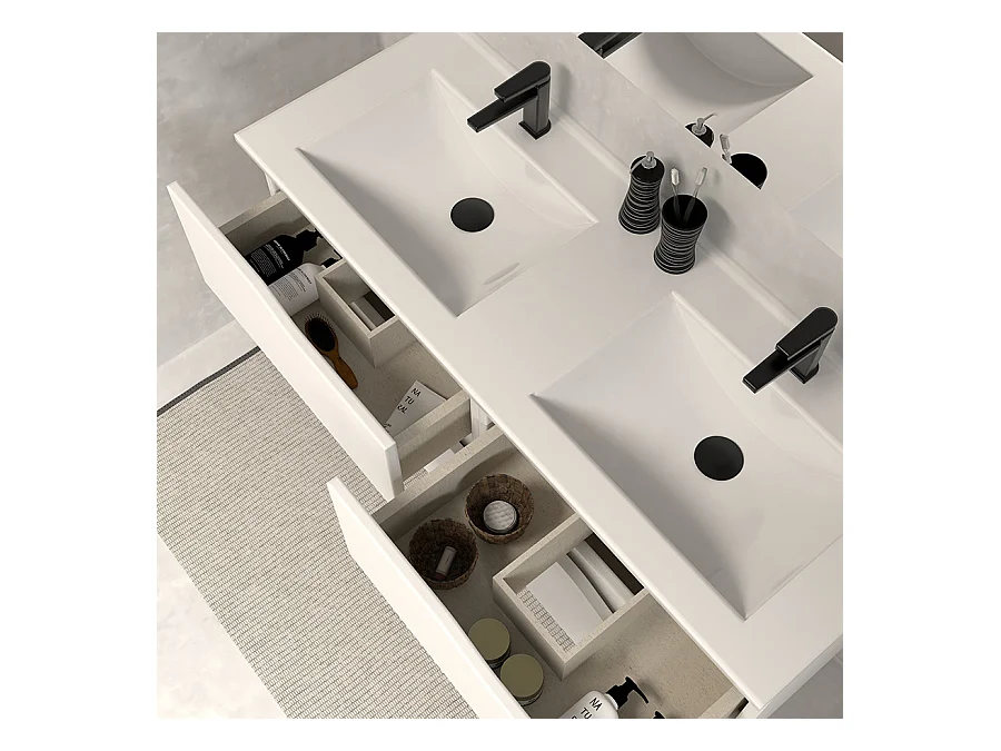Meuble de salle de bain 140cm double vasque - 4 tiroirs - sans miroir - blanc - LUNA