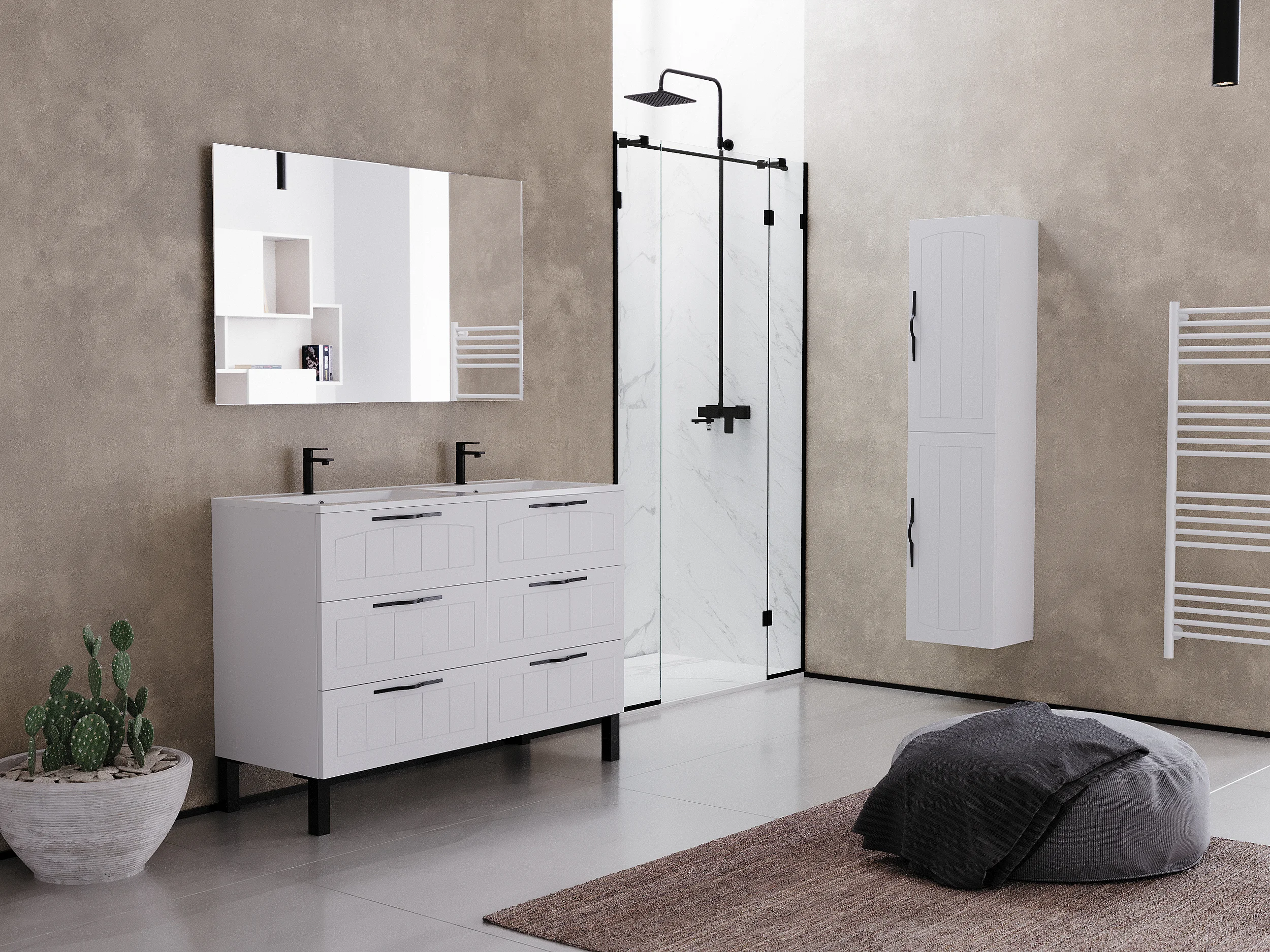 Meuble de salle de bain 140cm double vasque - 6 tiroirs - blanc - CALA