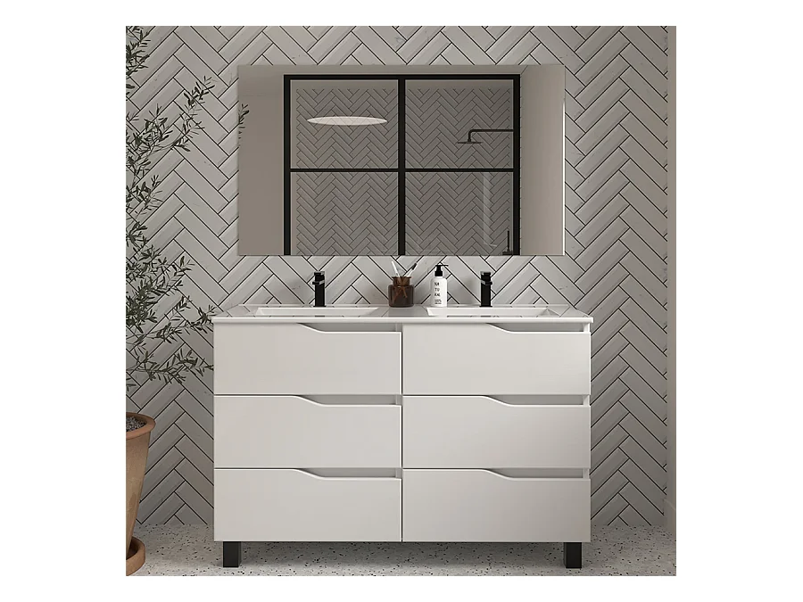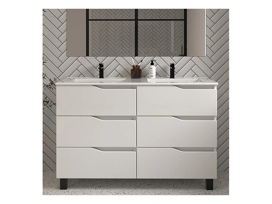 Meuble de salle de bain 140cm double vasque - 6 tiroirs - blanc - MATA
