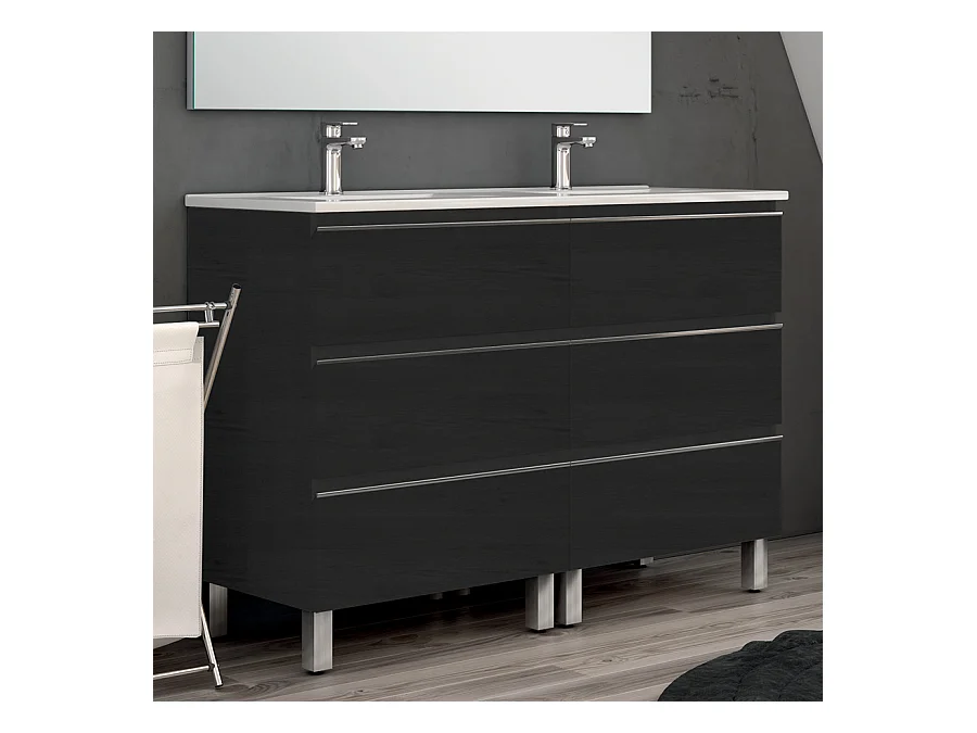 Meuble de salle de bain 140cm double vasque - 6 tiroirs - sans miroir - PALMA - ebony (bois noir)