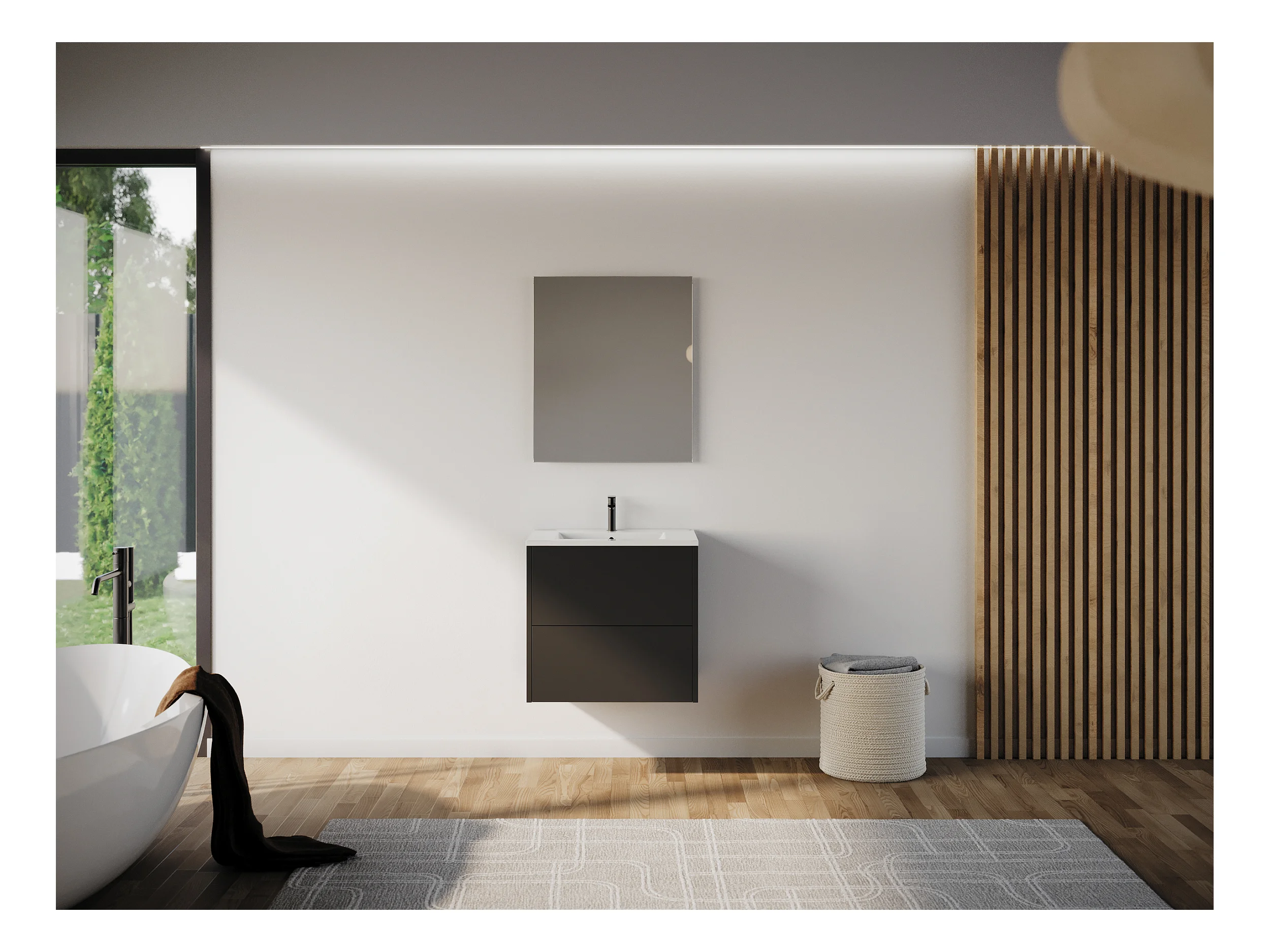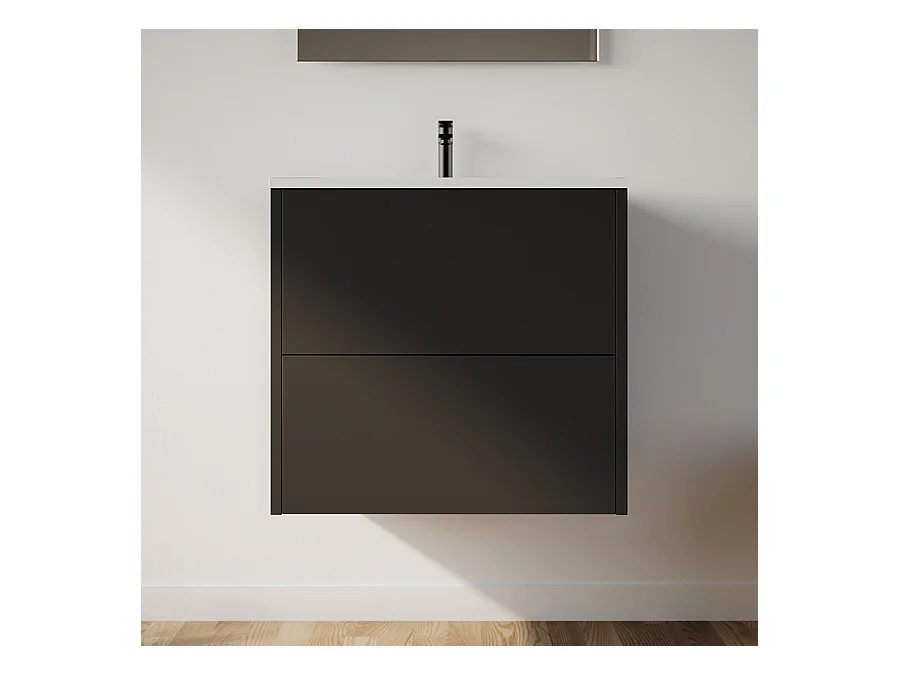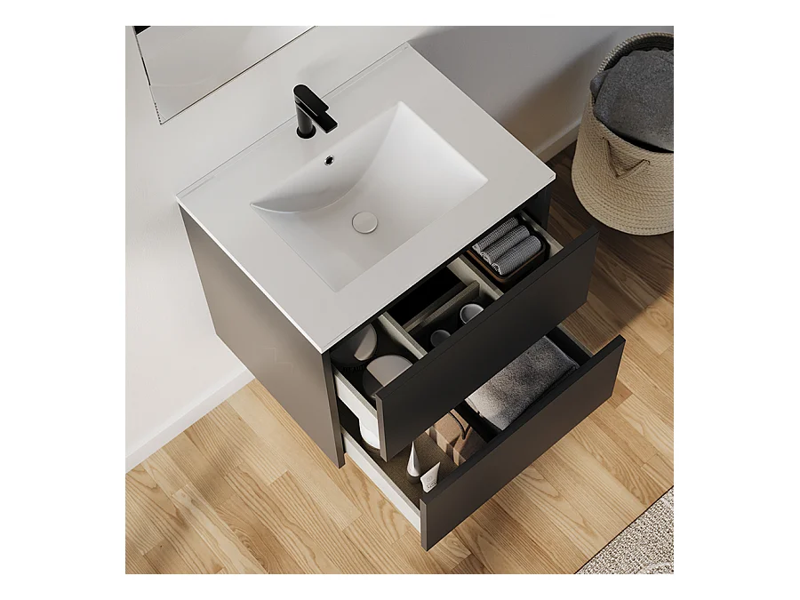 Meuble de salle de bain 60cm avec simple vasque - 2 tiroirs - sans miroir - noir - MONA