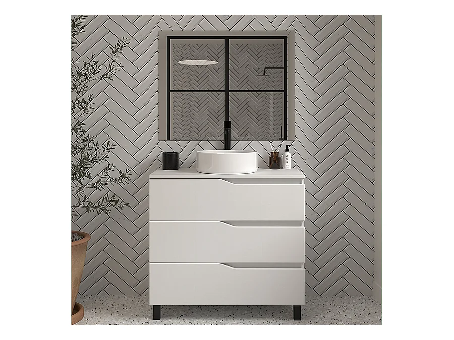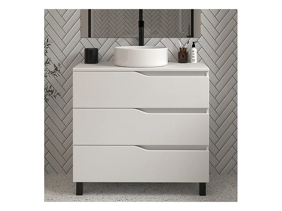 Meuble de salle de bain 70cm avec plateau et vasque à poser - 3 tiroirs - blanc - MATA