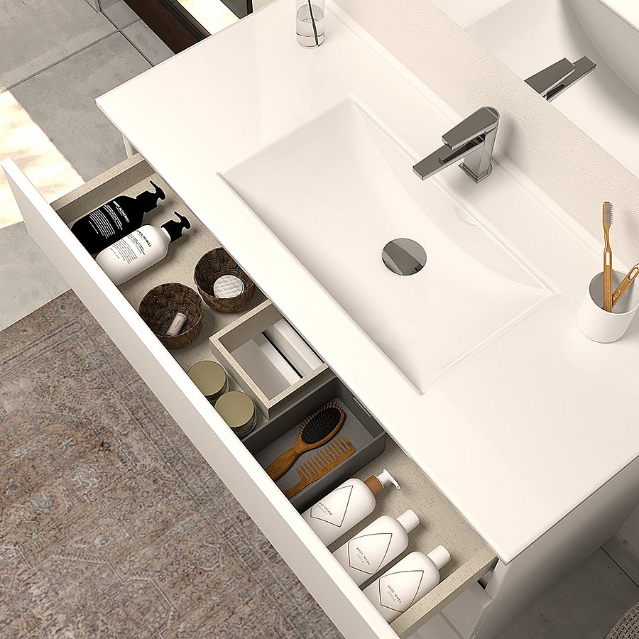 Meuble de salle de bain 80cm simple vasque - 3 tiroirs - blanc - MAYOR